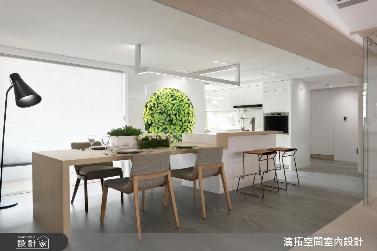 開放式廚房搭配中島備餐檯的設計,加上餐桌和吧檯的串聯,滿足備餐、輕食、宴客等不同使用目的。用餐人數可精簡,也可複雜,生活機能也因為如此周全的規畫而更圓滿。