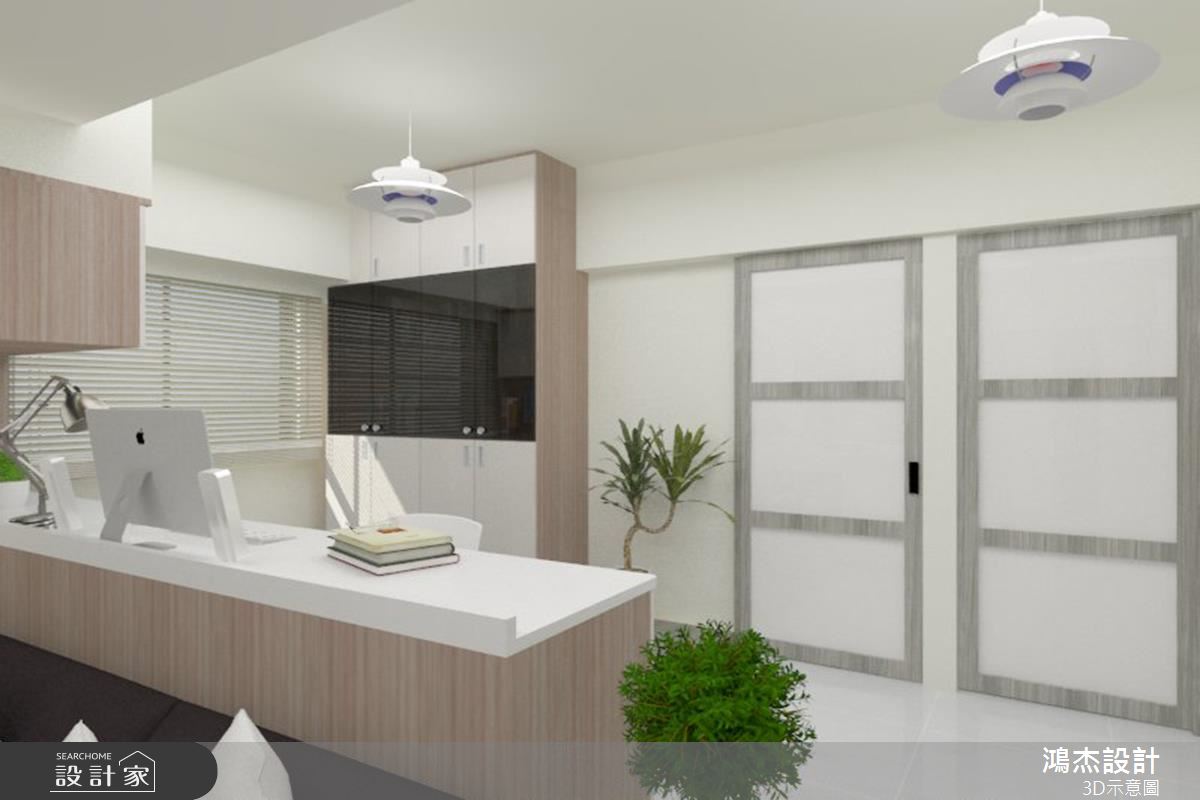 空間整體,透過純白與木質板材相互交織,打造簡約風主題,搭接黑鏡妝點櫃面,在異材質拼貼之下,使居家視野顯出層次,而為了維持簡單調性並提升視覺明亮度,特別選以間接光源暗藏於天花之下,並針對樑體位置作出修飾,滿足俐落清爽的架構印象;實用機能面,設計師亦悉心策劃,除了妥善安排每個櫃體功能,甚至轉角處也結合展示空間,美化生活中的每一道視角,而潔淨的白色廚房,則開啟實用便利的烹飪情境;私領域,除了整合收納機能,彰顯落落大方的量體風貌之外,也藉由壁貼妝點達到畫龍點睛之效,兼具實用及美觀,落實居住者心之所嚮的休寢氛圍!