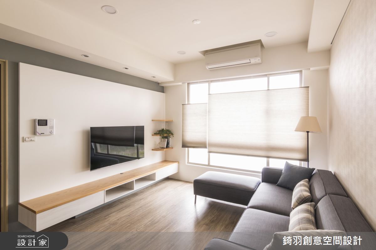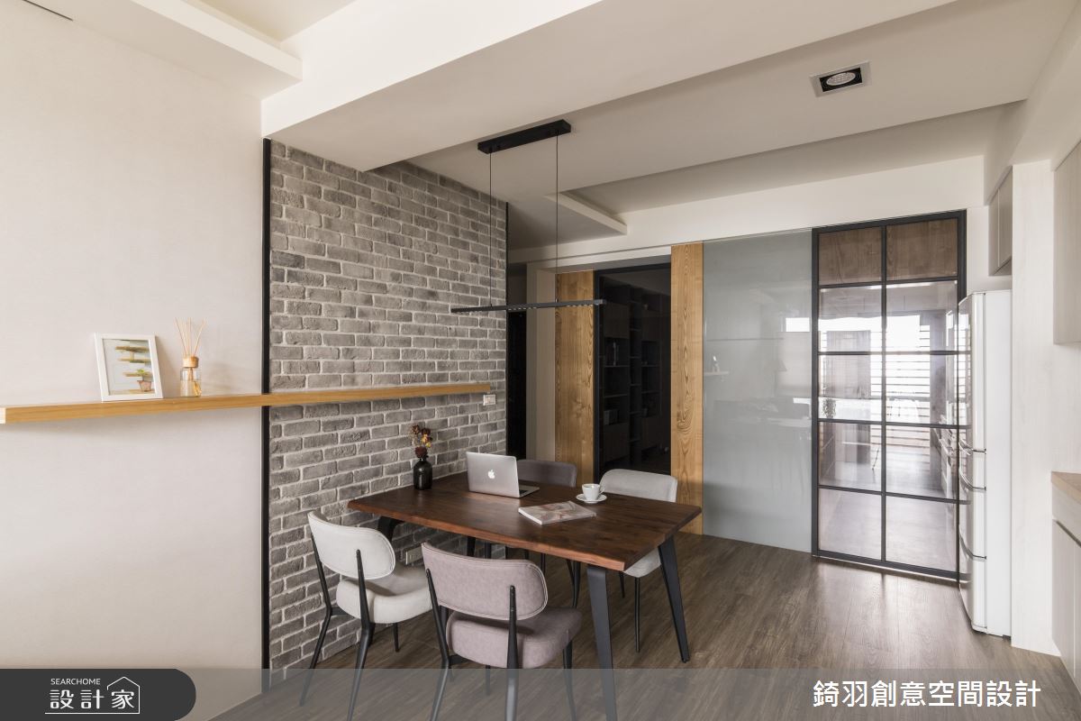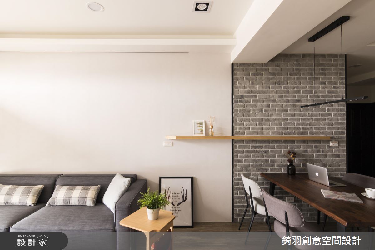 建議預算有限的新婚、小資族群,盡量選擇俐落大方的簡約、現代風格,除了減省預算,更能把配比放在水電管線、廚具設備更新的基礎施作,確保居住安全無虞。公領域利用海島型木地板以及清新的純白、灰階色調佐以木皮與文化石,創造紓壓、明亮的端景。由於屋主擁有大量的收納需求,因此設計師在入門右側玄關規劃大面積櫃體因應鞋子、家用的收納空間,收攏雜亂的可能性。特意將獨立廚房的門片換為鐵件玻璃拉門,不僅阻止油煙逸散更能維持通透性,並巧妙將電器櫃移至餐廳區域,補足廚房坪數不足問題。