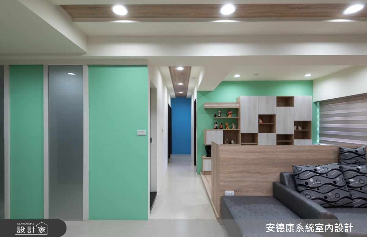 一家三口入住簡約的26坪室內,讓系統家具打造免百萬的優質住宅,更透過淺藍、淺綠的色彩妝點,以及超強的收納,形塑機能與美學兼備的空間。
