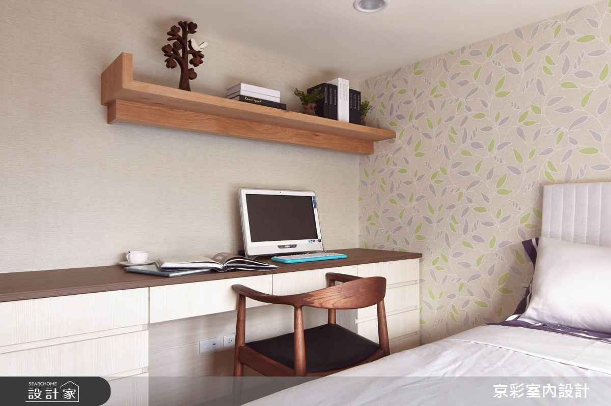 設計師以夾層拓寬生活範圍,2樓的女孩房,則選用木質、壁紙交織,帶出一抹清新的自然氣息!