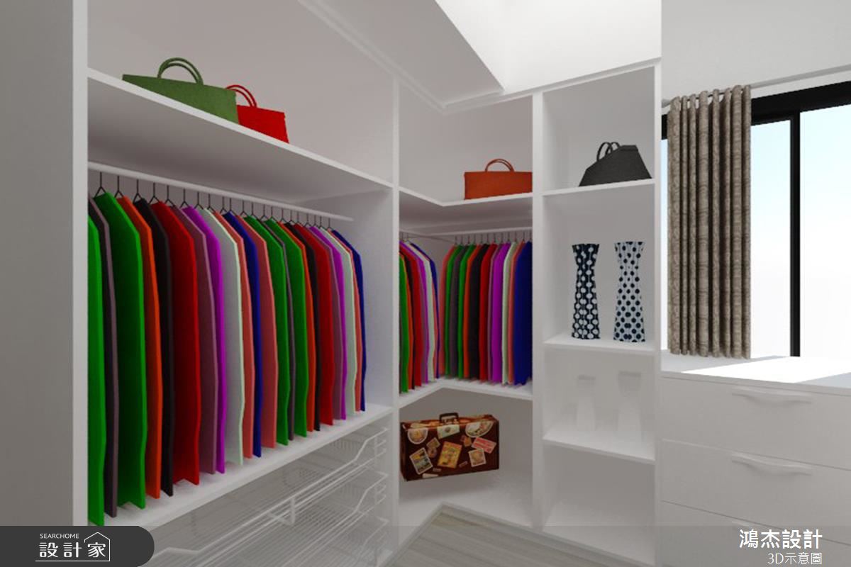 沒有太多繁複設計的更衣間,回歸實用性初衷,加入簡單的櫃體,並隱藏大量的收納功能,即使是轉角也可置物,使空間利用程度大幅提升!