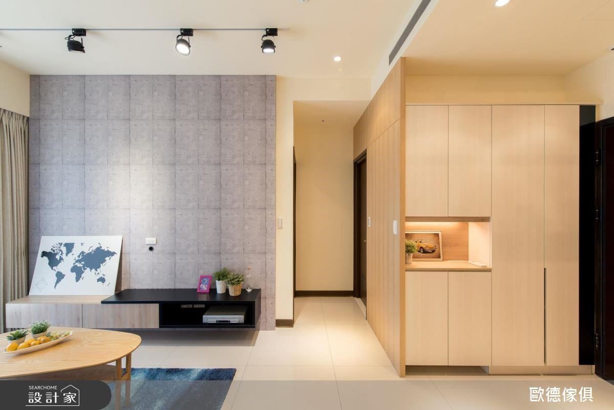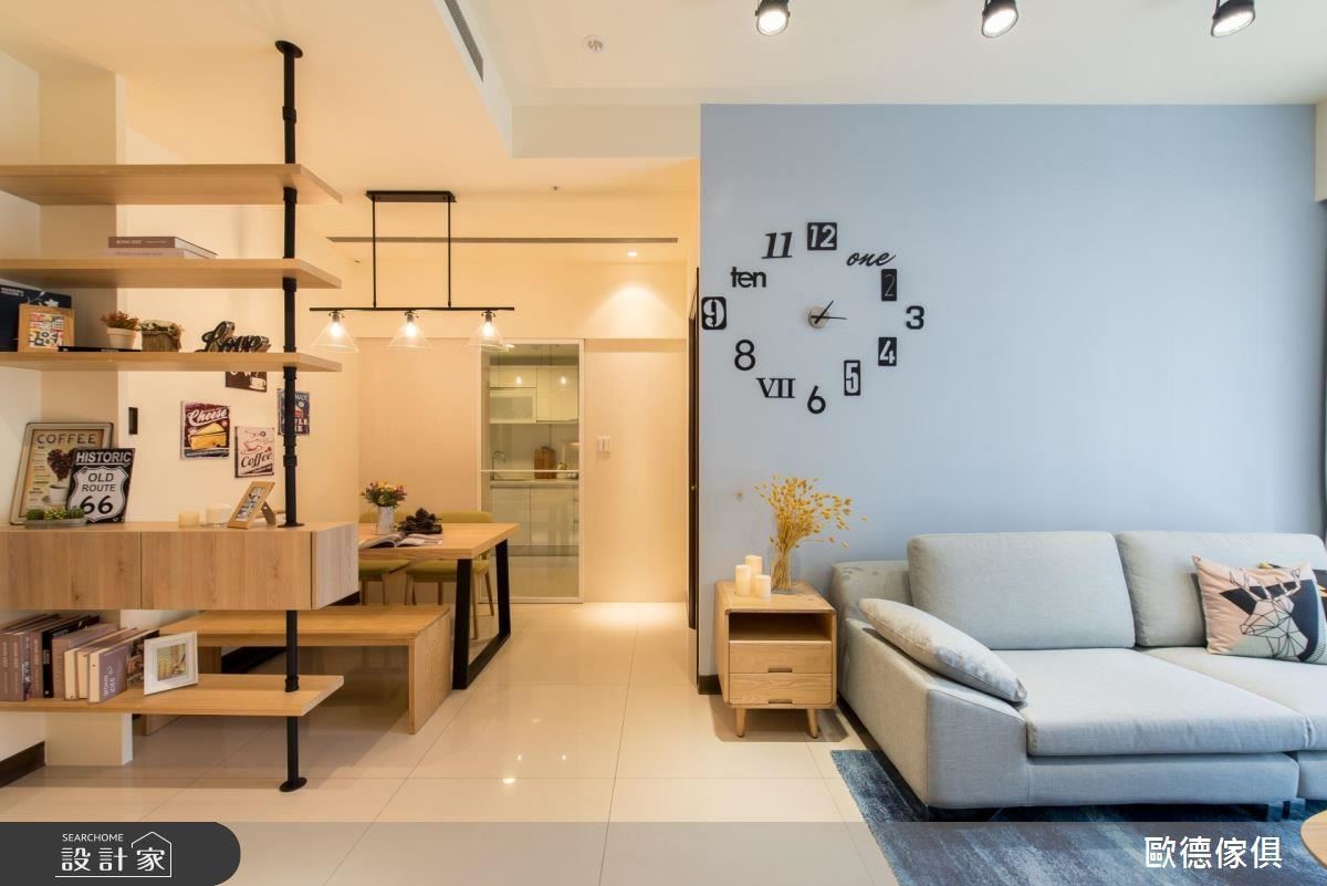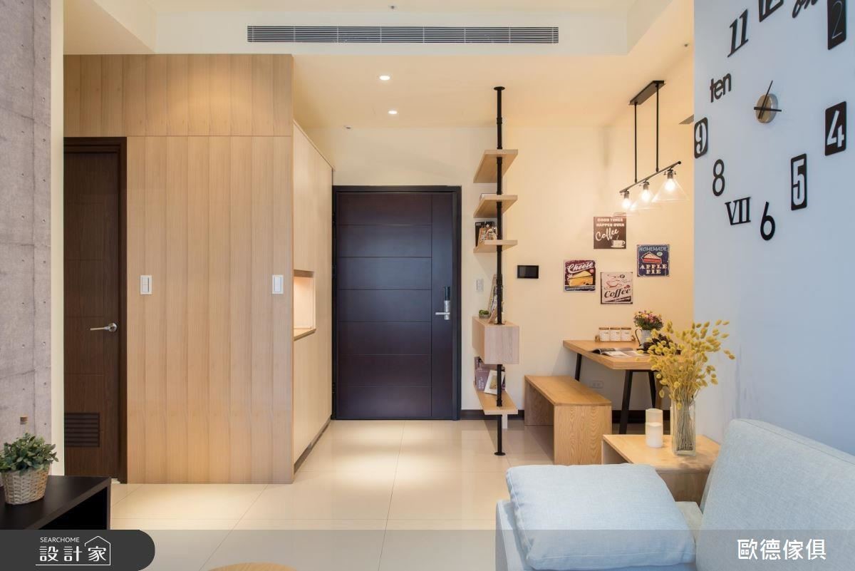 年輕的屋主夫妻一直渴望擁有自己的小窩,經多年努力工作後,終於購入人生中第一個家!擅長以客製化系統家具為空間混搭出獨特韻味的歐德傢俱設計師,在此次的設計上,揉合男屋主喜愛的工業風,以及女屋主鍾情的北歐風,營造出年輕且個性化的美學丰采,同時展現溫馨的居家氛圍;考量居家的實用需求,善用畸零空間來擴充收納機能。系統板材上以淡雅的松木色為主,空間自然達到放大的視覺效果,而系統板材擁有耐用、重複使用以及方便拆除的特性,更可因應屋主未來的變化性。