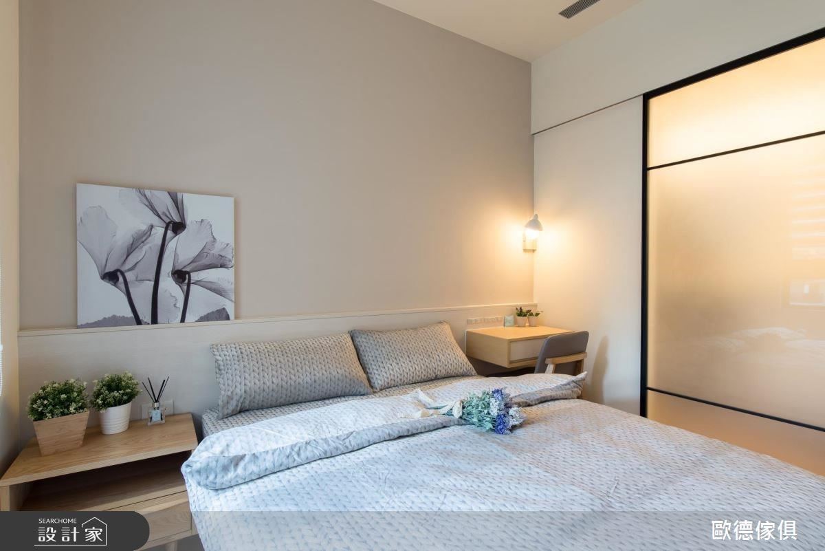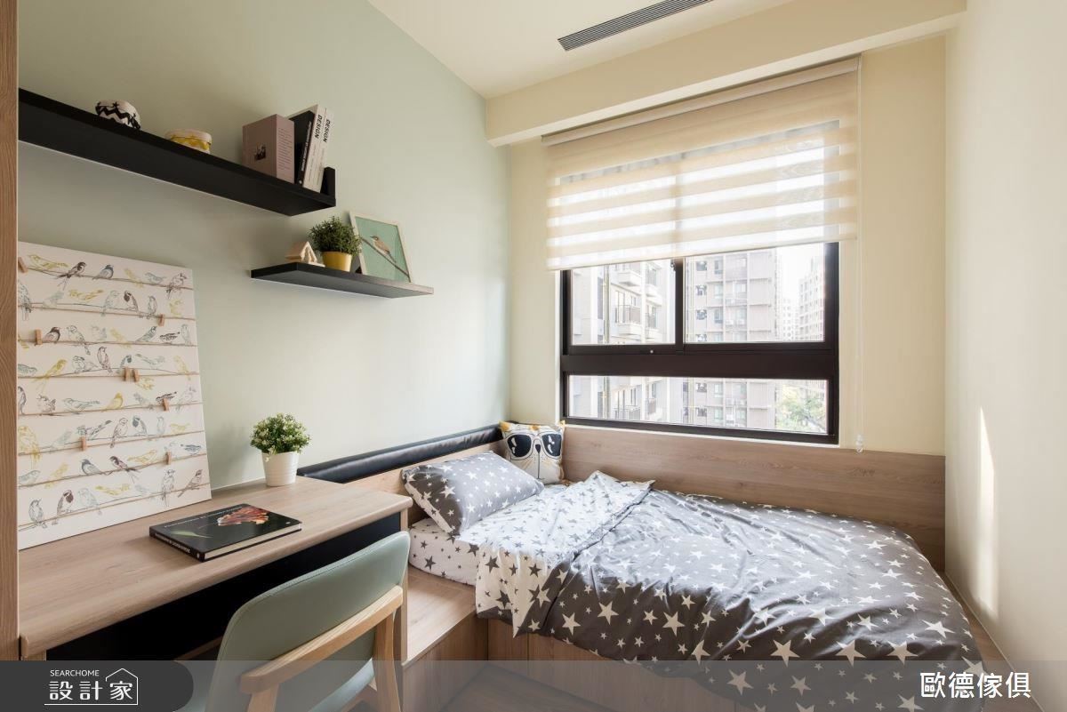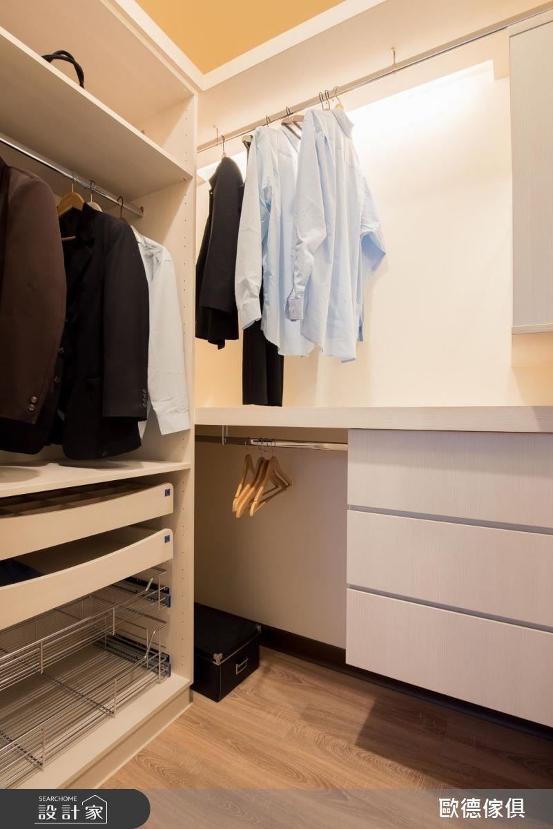 主臥利用裸色飾底,鋪陳一片安定的休憩氛圍,木作床頭櫃結合懸空的系統抽屜,增添輕盈感受;運用凹槽空間打造男、女更衣室,內部貼心規劃穿衣鏡,並結合層架收納,方便衣服在季節交替時收納與拿取。小孩房裡則利用床架下方增加收納功能,或放置床墊,如果有客人到訪,還可將床墊拉出,延展成雙人床功能。