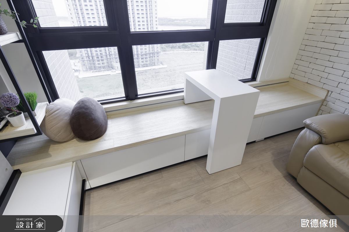 不論客廳或房內窗邊皆規劃了舒適的望海臥榻,完美發揮此屋優勢。客廳臥榻還設置了滑桌,增加臥榻使用機能及便利性,並為居家生活創造更多放鬆紓壓空間。
