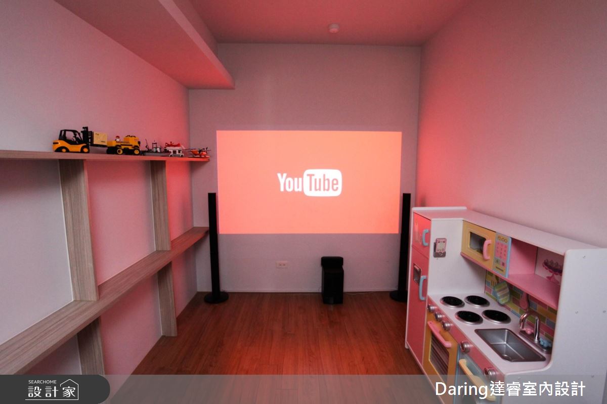 廳區,納入了露台的充沛日光,創造明亮場景,同時以斜角創意打造電視牆,界定出客廳及餐廚的分界,再陳列亮眼的芥末黃L型沙發,衍生出開放而充滿互動性的清新交誼領域;主臥、次房則於天花加入柔和的燈光效果,並整合一系列的收納表現,透過壁紙增添視覺變化性,鋪設木地板呈現溫潤感,兼具美觀、功能性與舒適性;同時,也特地打造獨立的遊戲室,不只作為小朋友的玩樂天地,也加入智能光源變換,透過投影燈的開啟,即形成一處可闔家同歡的視聽場域!