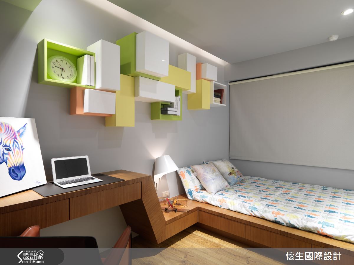 小孩房皆利用大膽創意,設計出色彩繽紛及特色牆面收納櫃,呈現活潑氛圍。並利用有限的空間以隱藏式設計或是一體成形的木板,俐落空間視覺,並增加收納機能。