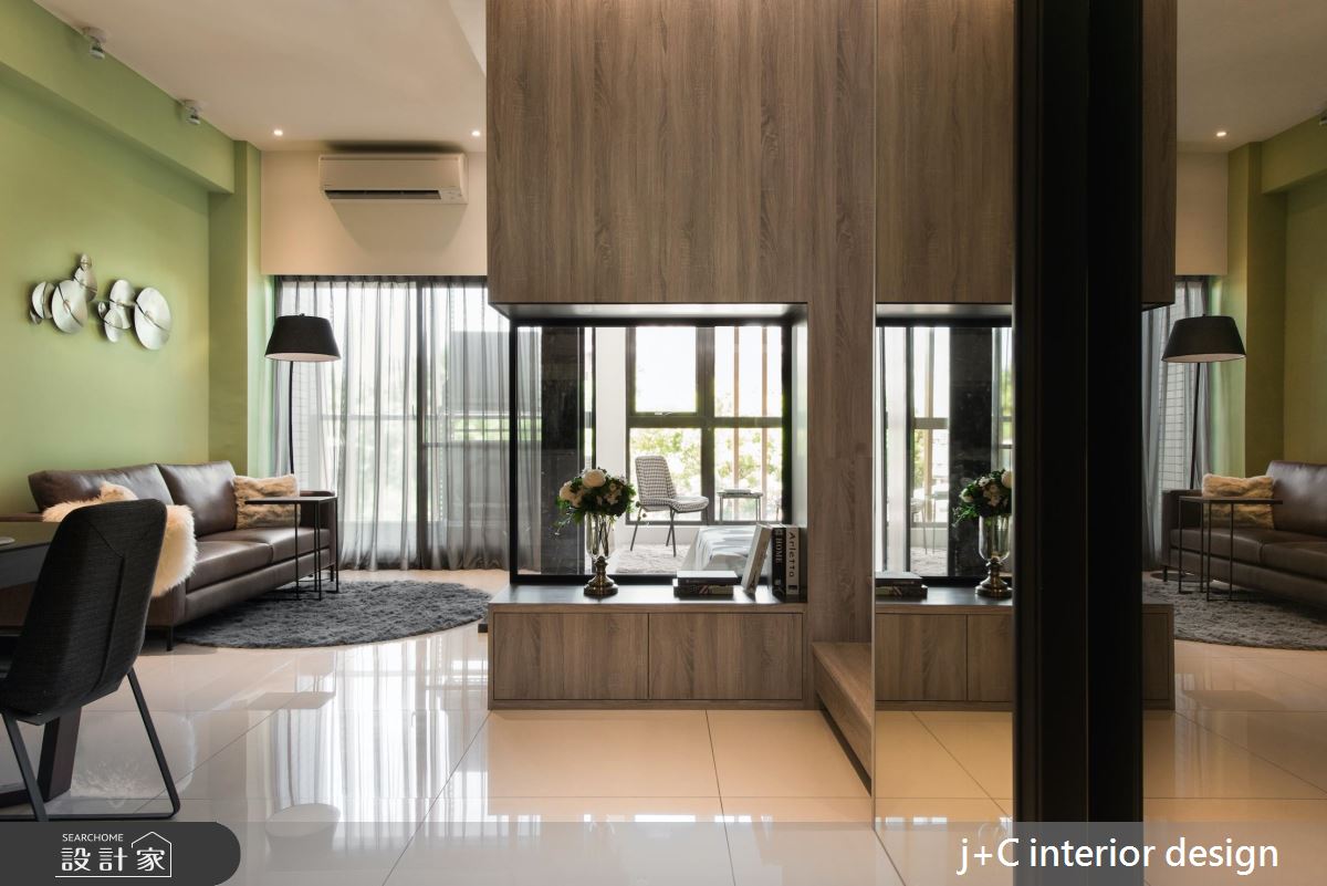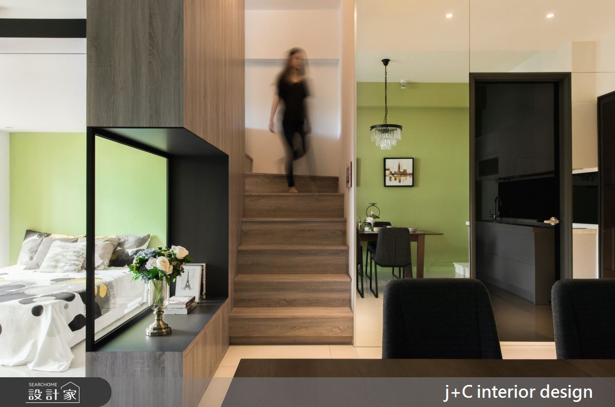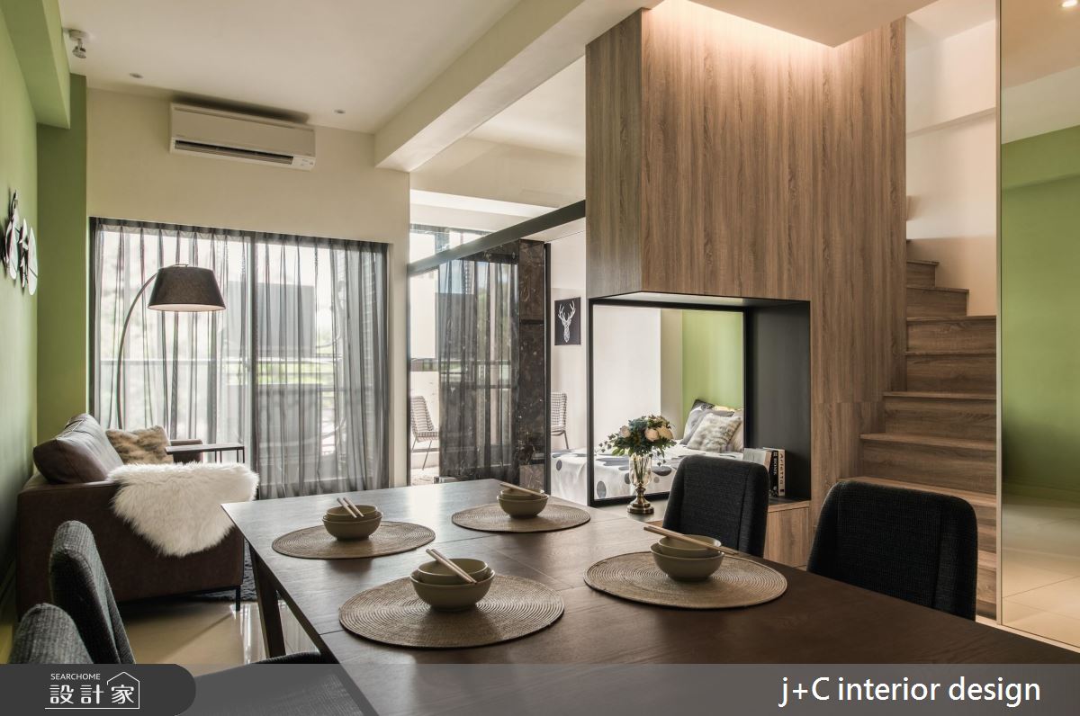 空間援引柔和的抹茶綠色調,搭配溫潤的淺色木素材,為居宅帶來活力氣息,並加入流暢動線串聯客廳、寢臥,型塑延伸的生活視野,且採用透明玻璃、鏡面建材與透空處理,成功拓大坪數的限制,創造通透空間視感,同時導入戶外的大面綠景,讓公私領域皆可接受到美好景觀與採光,使裡外皆綠意盎然,延續滿滿的生動氛圍,而多元的軟件家飾則妝點在各個角落,為小空間注入溫度感與生命力!