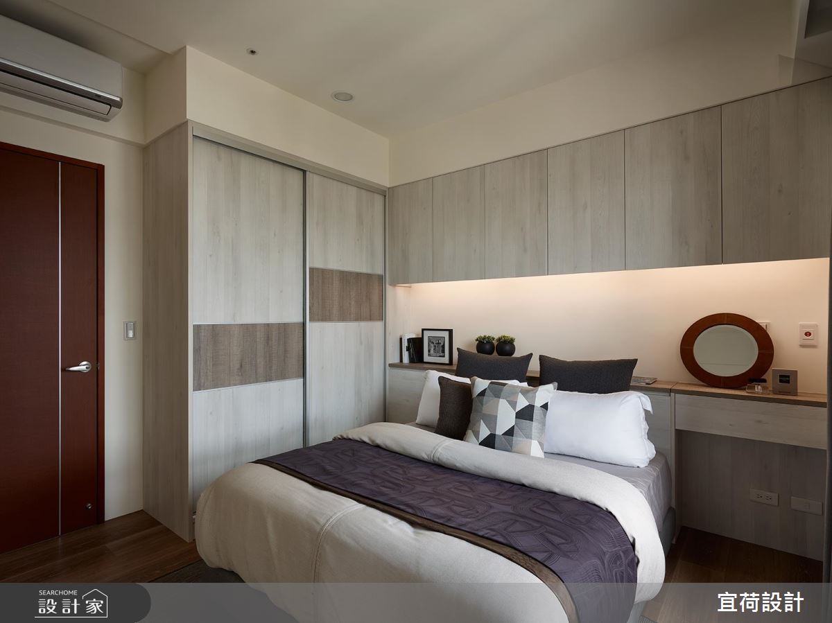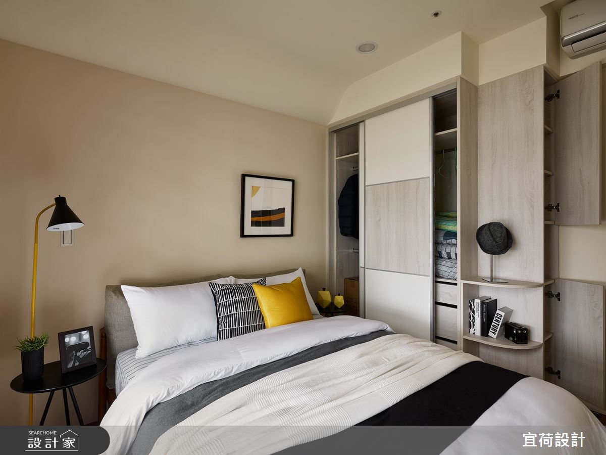 臥房同樣重視收納機能,善用樑下空間打造床頭櫃及衣櫃,更以色彩點綴牆面、家具與軟件,玩出活潑明快的情調。