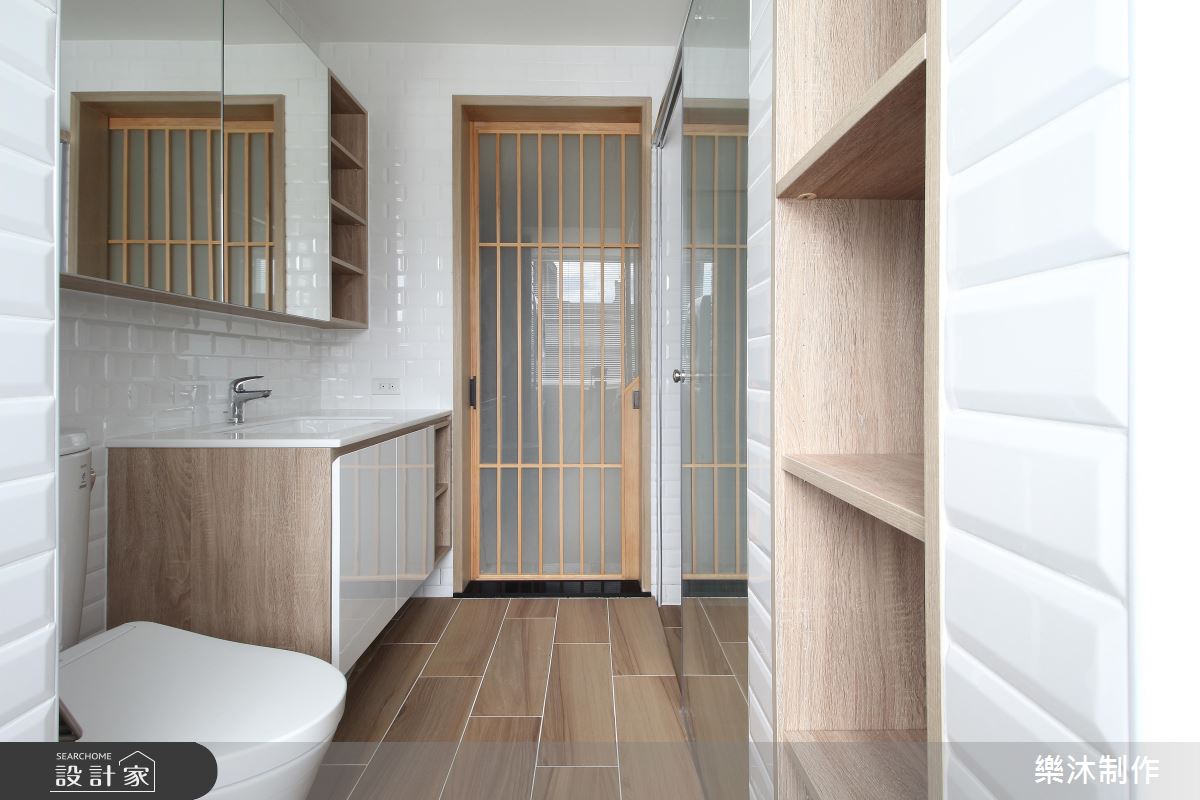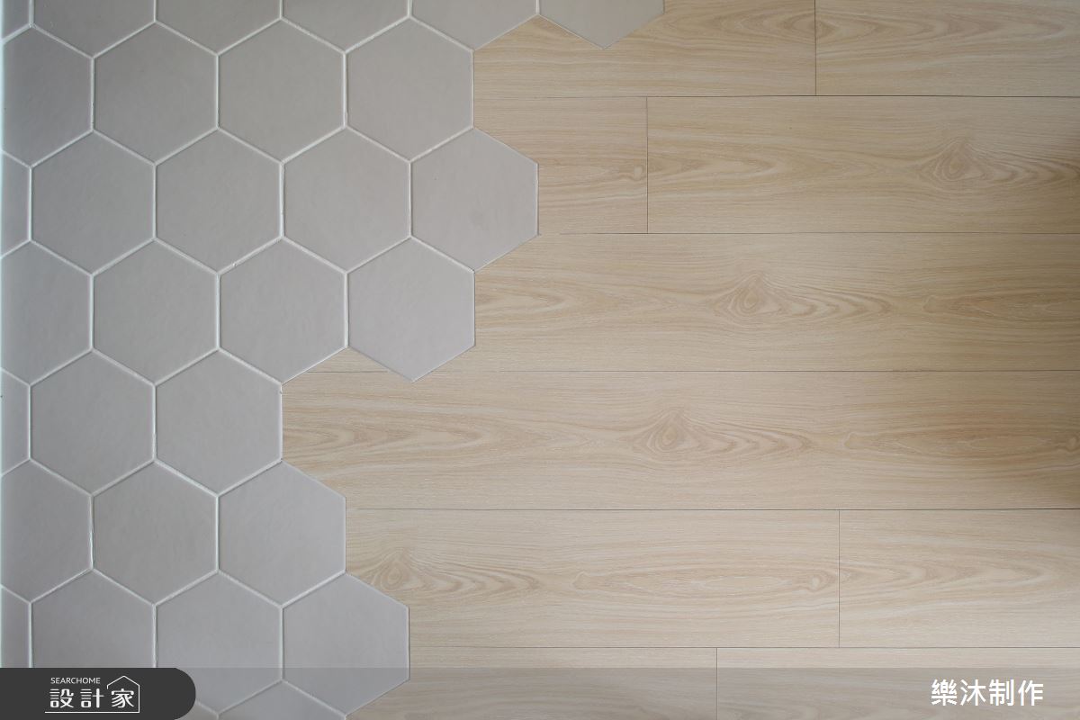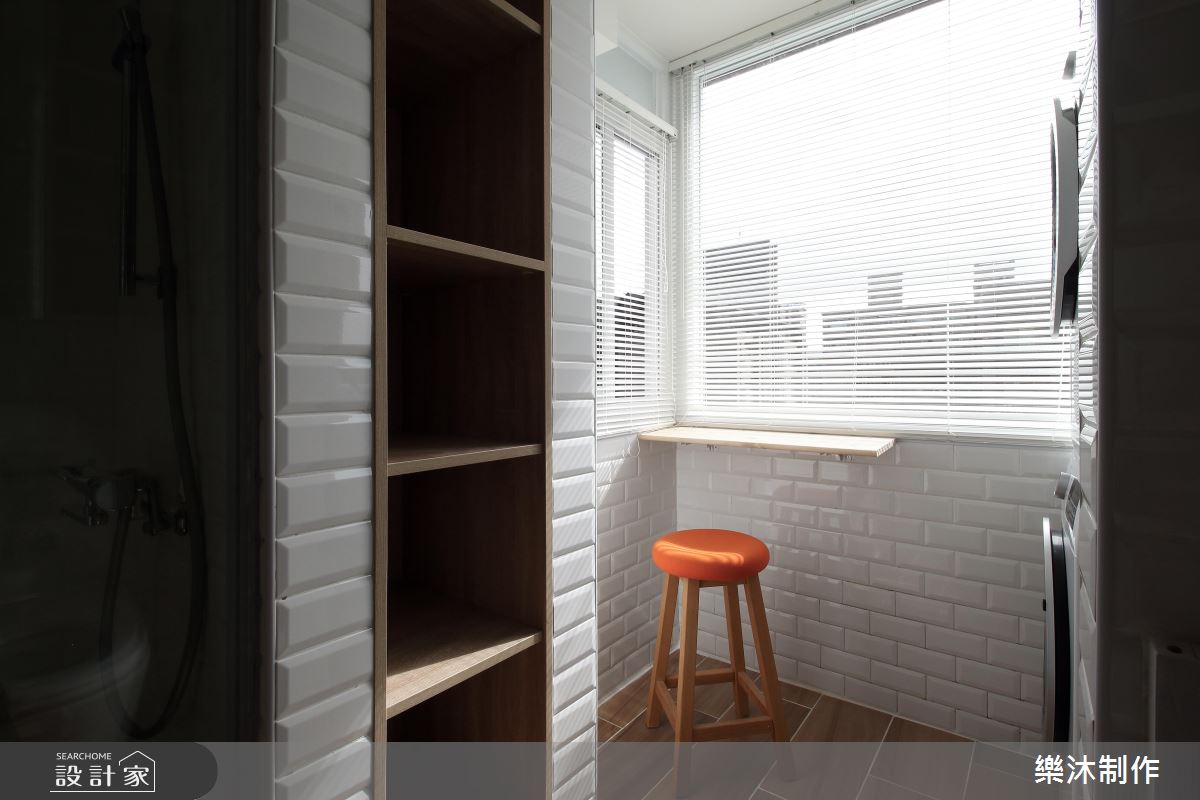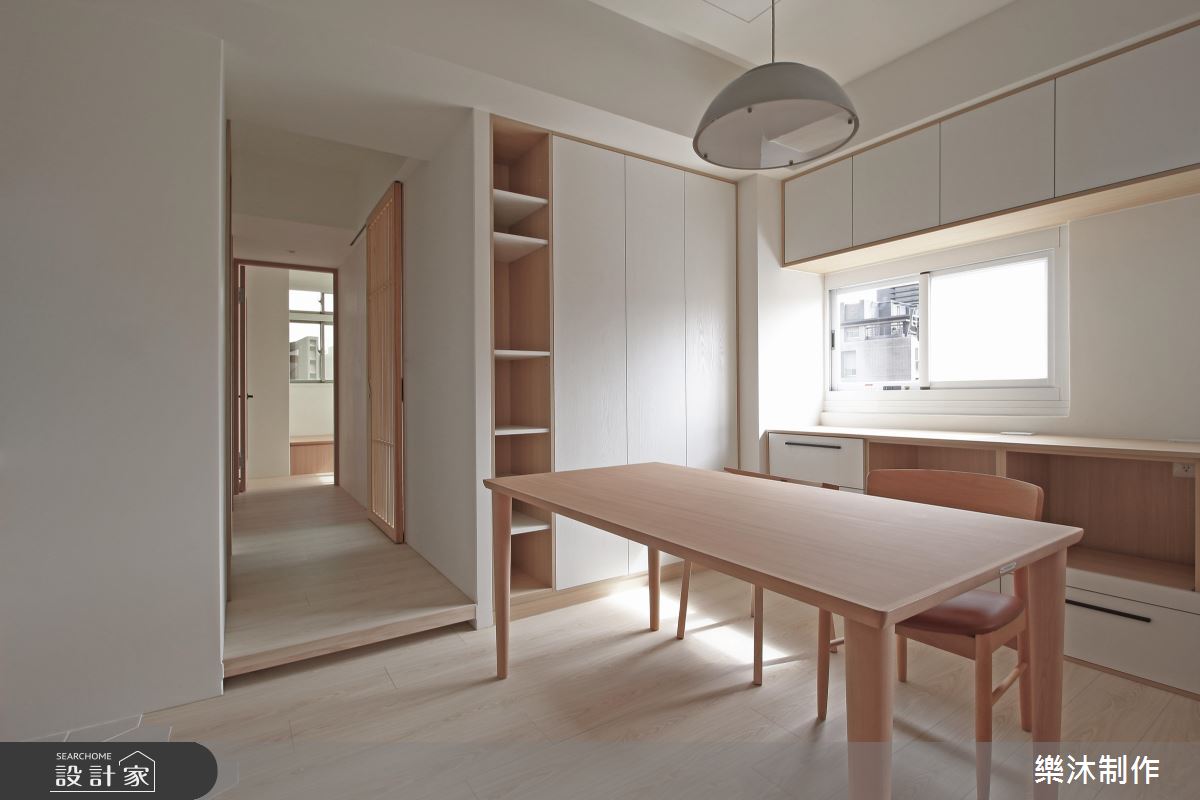 設計師引用純白的配色、局部的木皮,加上窗外採光浸潤,造就親切無壓的生活感受,在輕柔的底蘊中,使有限坪數也能顯得寬敞而舒適,電視牆則融合弧線延展,造成視覺流動意象,並搭配木層板穿插展現立體表情,一側則妝點一叢綠意植栽,替空間增添一抹生動焦點;餐廳與廚房的地板部分,刻意選以異材質做出分界,讓磚面與木素材產生對話,使地坪也成為出色的展示風景;同時,將含蓄的日式元素帶入北歐風格內,讓細膩線條表現在格柵、百葉窗之間,以不刻意雕飾的質蘊,繪出純粹自然的樸實意象!