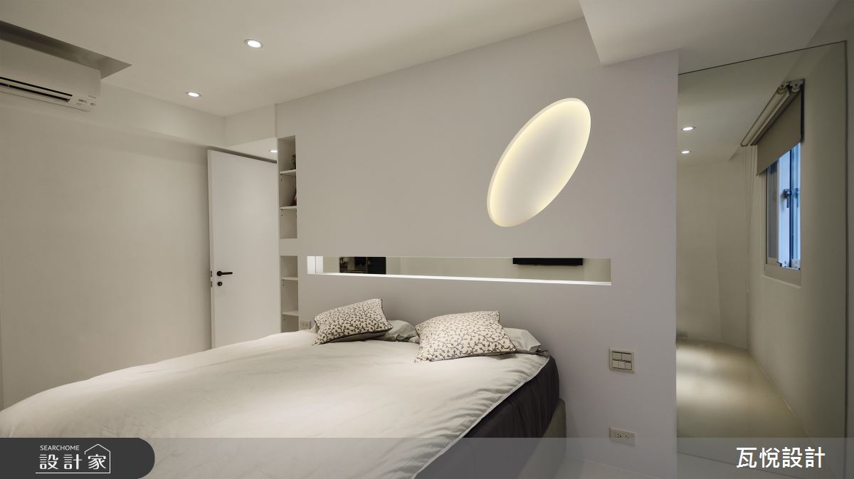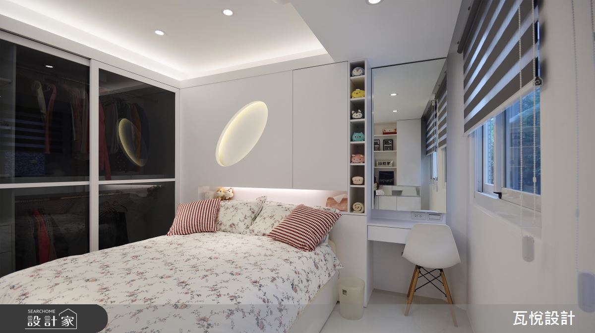設計師整併原先零碎的私領域隔間,並延續公領域的色調,以純白色彩打造主臥與女兒房,達到了本次設計在於視覺深度、風格與高度上的三種層次。