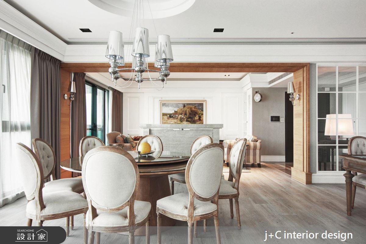 102 坪的新古典大宅,是女兒餽贈父母的孝心賀禮,空間內,除了重整格局、劃分理想動線之外,也兼具了度假與機能需求,並挹注優雅的古典氛圍,讓爸媽坐享舒適滿分的後半人生,快跟著小編一起來看看吧!在精準的格局調配後,設計師引入明亮採光與戶外美景,並給予廳區天地壁整合,點綴輕柔線板統整風格,同時搭配暖色系家