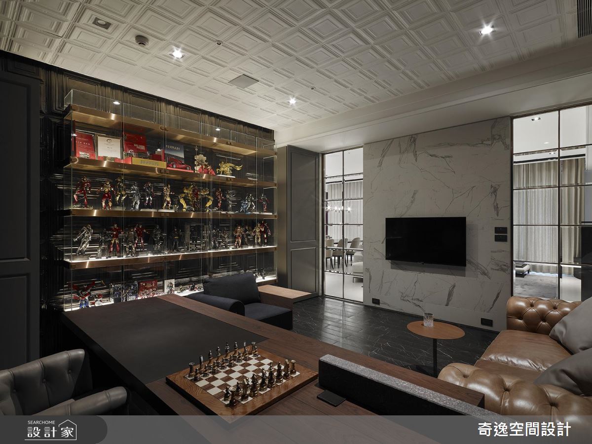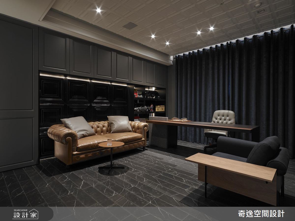 70 坪現代風宅邸是夫妻倆人的獨享天地,奇逸設計團隊以沉穩的色調與大器的建材開放拉出公領域的尺度,彰顯了專屬成年人的成熟與品味,卻巧妙位男主人保留一個空間給最真實的自己。