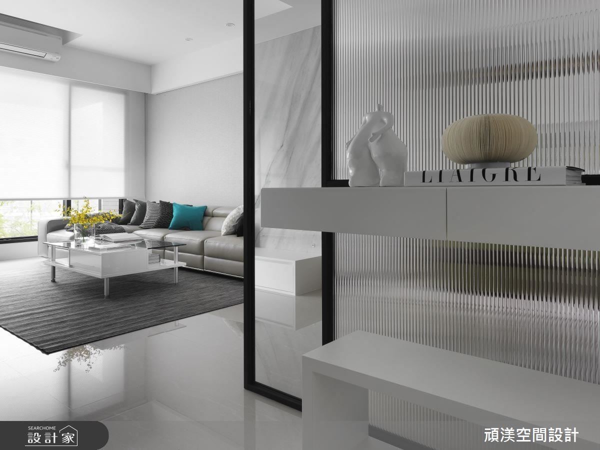 玄關處打造一面屏風,避掉開門見灶的疑慮,同時界定出內外領域。屏風挑選平條玻璃材質,霧面的效果讓室內空間不會一眼被看透,保有隱私;而結合穿衣鏡與穿鞋椅的貼心功能,外出時倍感便利;展示平台兼具抽屜的機能,不僅實踐日常美學的擺設,更滿足實用的收納機能。