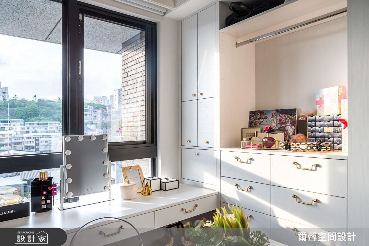 為了維持原始三房格局,並保有主臥優雅舒眠的完整性,以一間次臥打造獨立更衣室,配備則完全以機能考量。將原先柚木櫃體刷白,再增設各種符合女主人衣物、精品收納的格櫃,小中島則能放置首飾,臨窗面則是梳化桌,真是完美到極致的變身空間。另一間次臥則暫時規劃為女主人健身房,可以彈性改造成客房或兒童房。