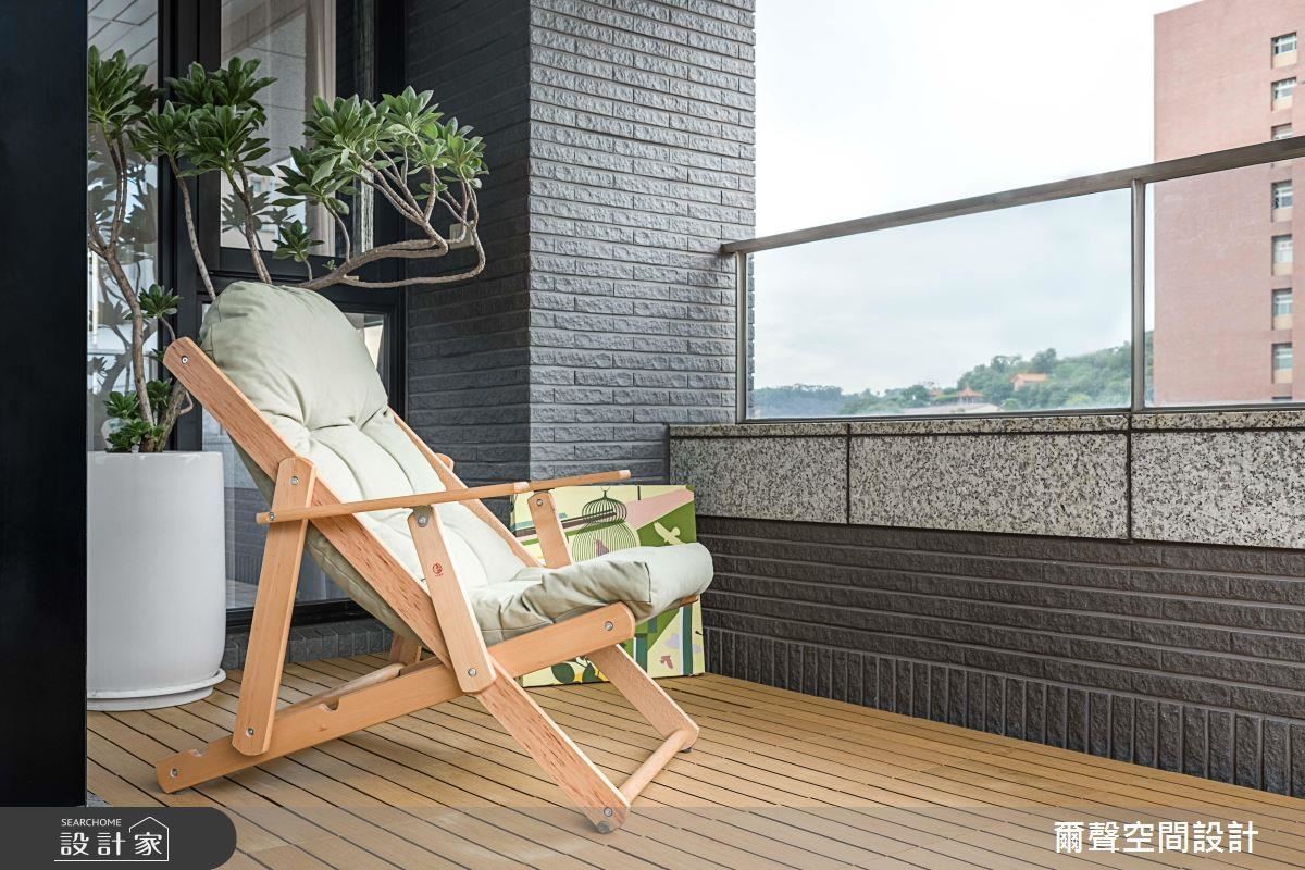 男主人當然也沒有受到冷落,電視牆漆上他堅持的含有銀粉的礦物塗料,低調卻有格調,反襯出客廳的卓越配色。而當初買下這間房子,正因為他喜愛這個大陽台,自己鋪設木地板、種植植栽,打造專屬的放空天地。