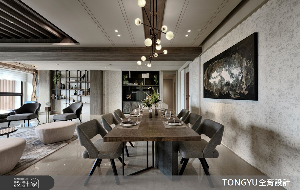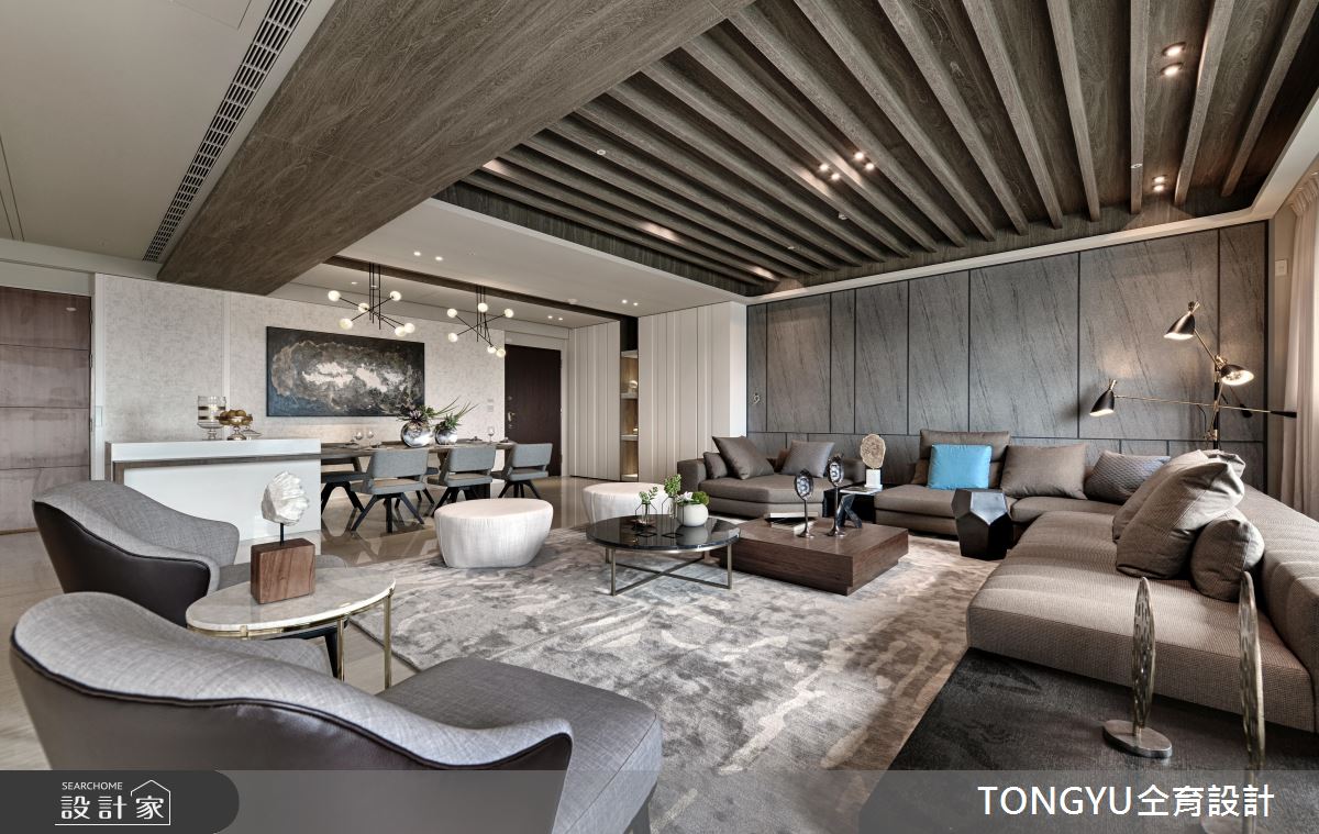 百坪大宅,坐擁得天獨厚的海景,設計師秉持以人為本、從心出發的設計理念,將自然溫度帶入居宅,引美景入室,使生活中盡是水天一色的自然情致,快跟著小編一起來看看吧!設計師透過多元建材及壁面造型劃分場域,客廳區,採以大量沉穩色調家具,展現自然與人文的結合,在木色的溫潤之中,與淨白的餐廚領域形成對比,而客廳天
