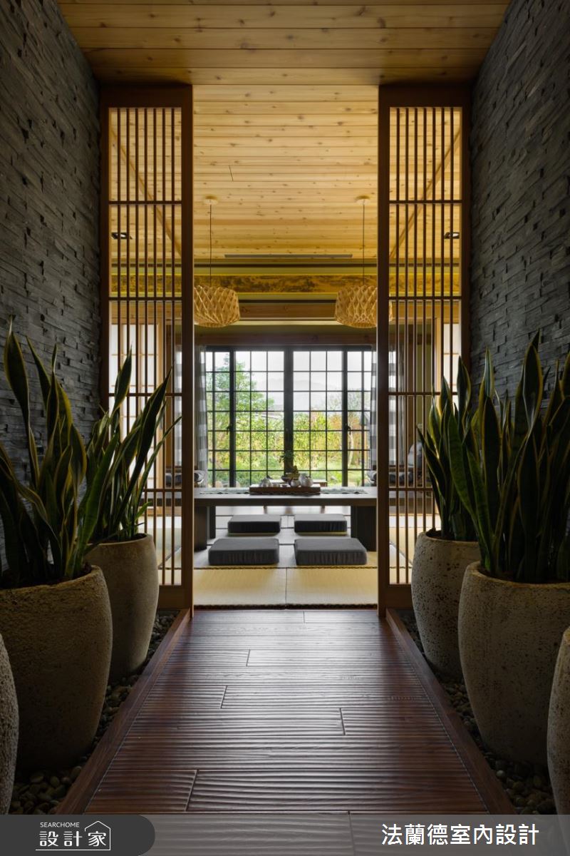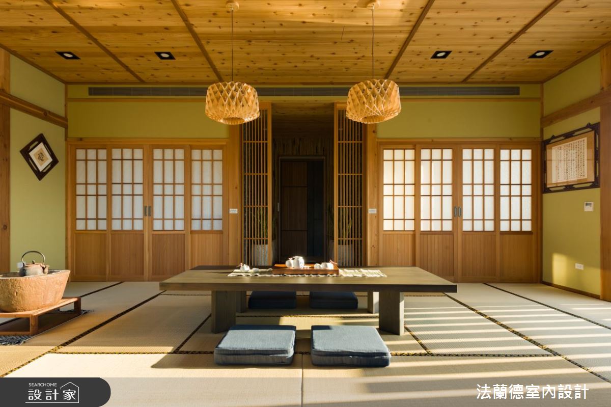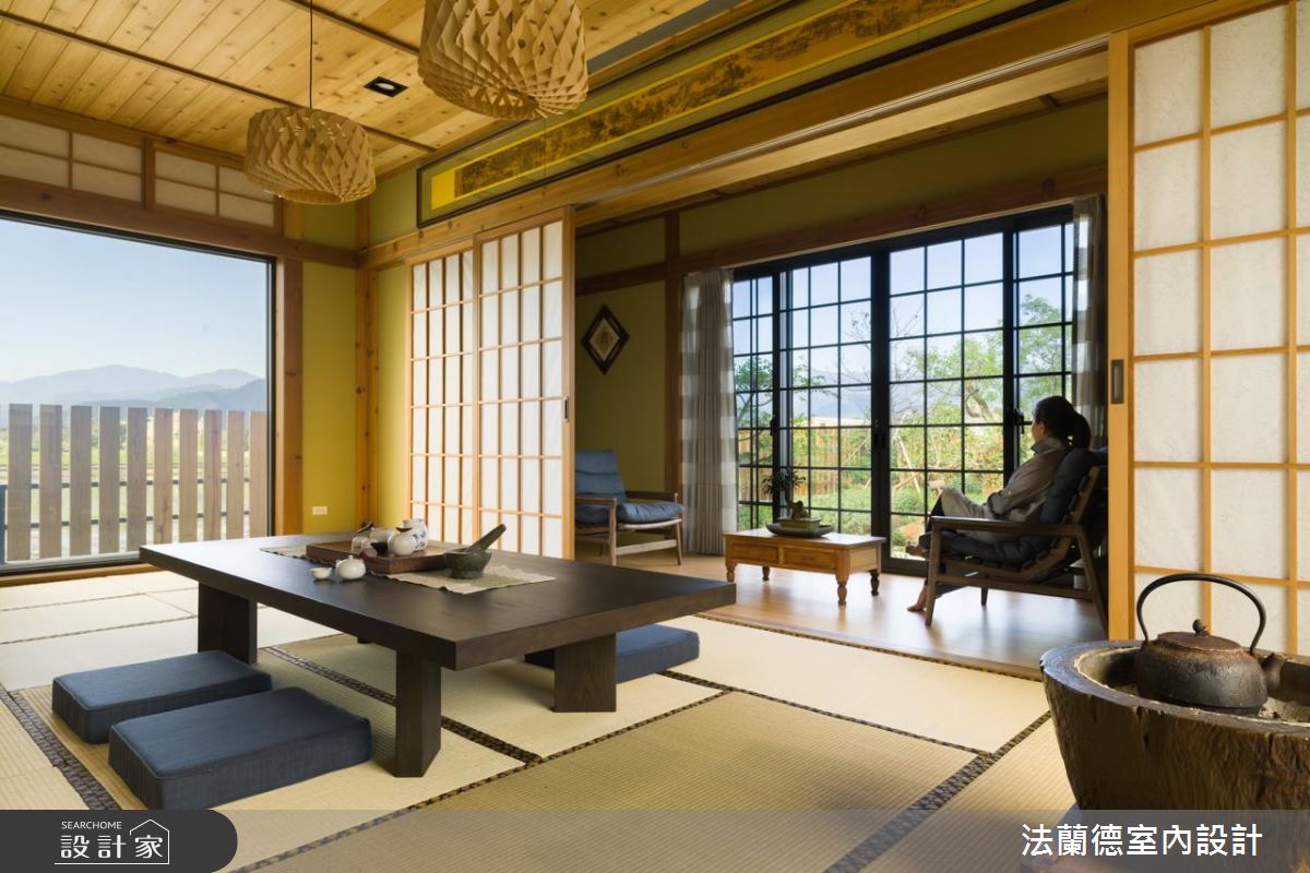 台灣越來越多人選擇定居衛星城市以求良好的居住品質,位於近郊田園的 90 坪透天別墅擁有綠意山景的絕佳基地優勢,屋主與法蘭德設計團隊合作,打造了道地的日式風格,與青翠蓊鬱的景緻相互映。
