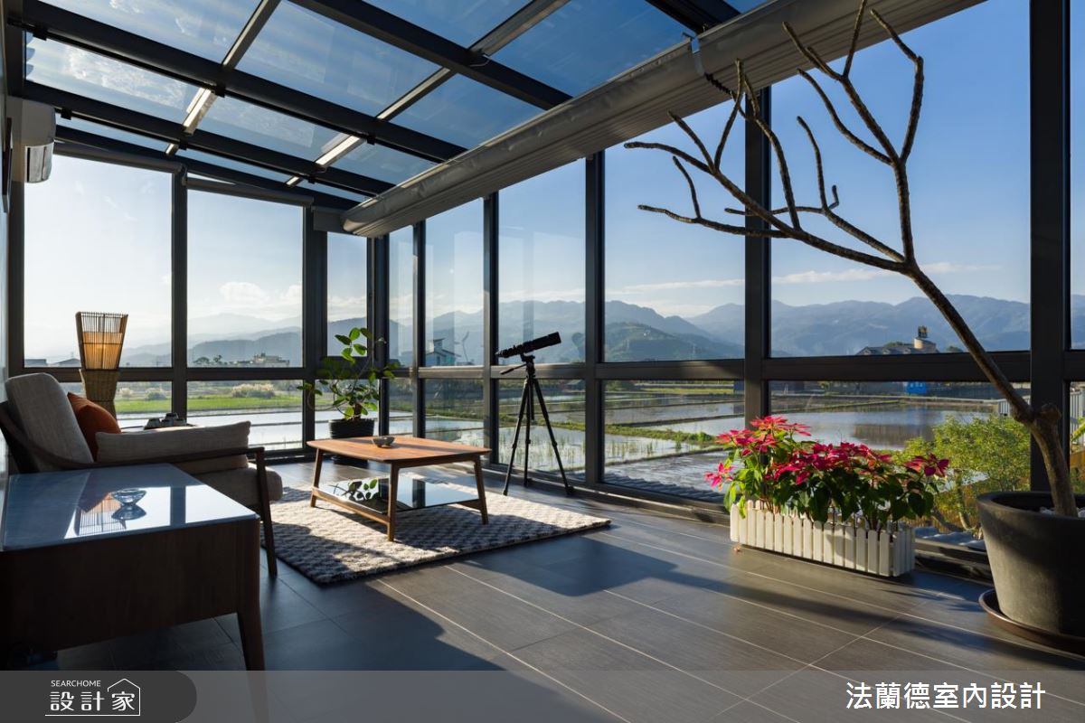 老屋本身有漏水、採光以及動線問題,雖有三面可直接將田野山景與溪流納入屋內的觀景窗,卻也因此容易受到季風、颱風的影響。因此設計師在克服有限時間與天氣變因情況下,加強屋案抗強風豪雨機能,並全面翻新格局,完整達到屋主需求。針對風格營造,設計師將道地的日式風格放在一樓的禪風休閒區,特別打造類緣廊設計,並注入榻榻米、格柵與雪見障子等元素,宛如日式古典建築。公領域以大量木元素結合鐵件,提供美觀與收納機能,餐廳區域更放置大張餐桌,讓屋主與親朋好友得以共享歡聚時光。