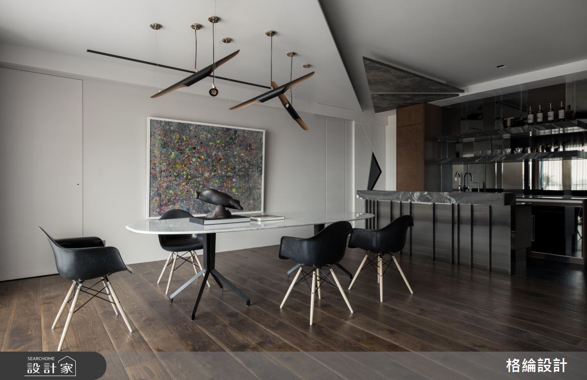 剛成家的屋主,正經歷事業起步的階段,因此藉由垂直向下的線條韻律感為概念,烘托出30度向的切面語彙,並利用簡約現代風作為絕佳演繹,幾何線條幻化設計靈感遊走於空間裡,畫龍點睛,展現非凡的美學思維。