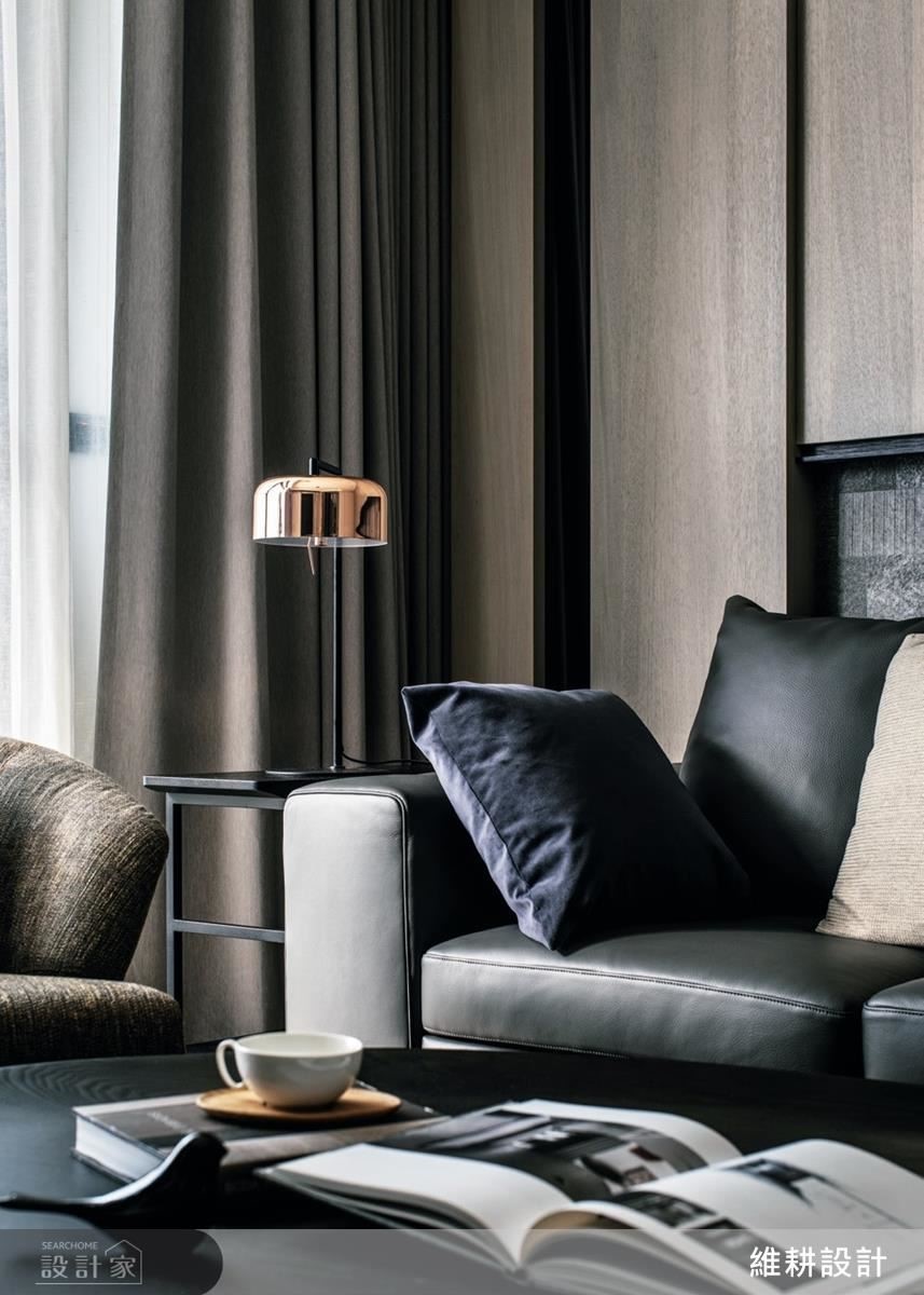 挹注開放式規劃,維耕設計團隊為原有狹長的格局迎納敞朗日光,搭配簡約沉穩的灰調、溫暖的木皮與現代語彙俐落線條,建構出溫馨、華美兼具的居家樣貌。