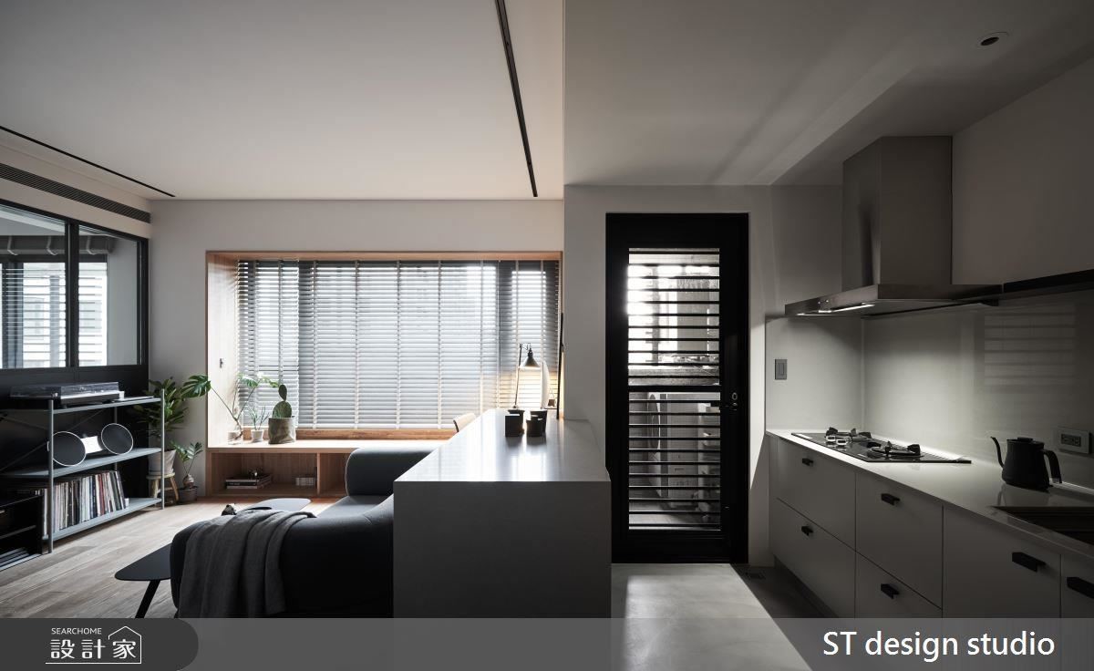 15 坪大的住宅,承載著主人崇尚中性簡約風格的高雅品味。 ST design studio 巧妙運用適當留白、冷暖調性的材質與色彩,使空間中各個物件的機能感既顯抽象而又整合,營造出簡練、跳脫商業的無為場域。