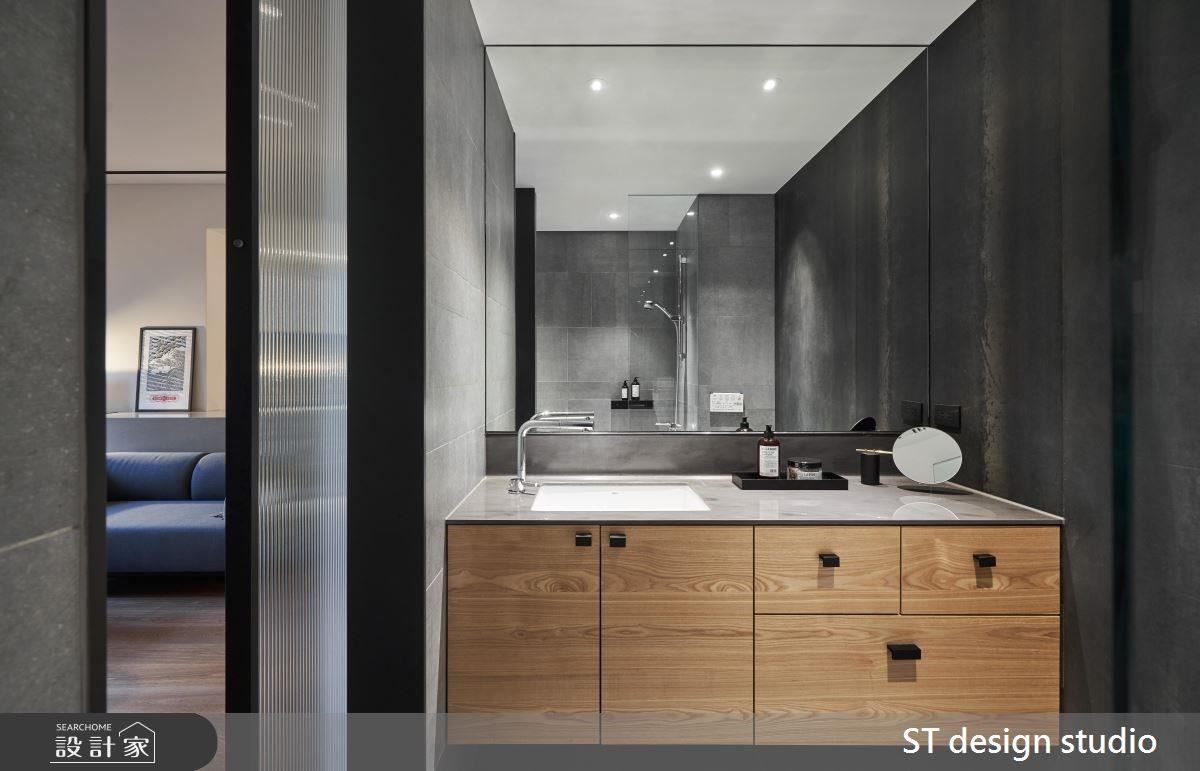 呼應屋主對於簡約風格的渴求,蔡思棣從色彩比例的拿捏著手,大膽採取減法留白的設計手法,促使多元的對比調性即便共存也毫不違和。好比以灰色系為主軸的客廳、廚房等公共空間非但不顯單調,反倒還能襯托浴室外牆、更衣室拉門,以及客廳與臥房隔間所採用的碳黑色立面。一切看似抽離了風格框架,實則回歸居家設計最純粹的主張,化生活美學於無形。