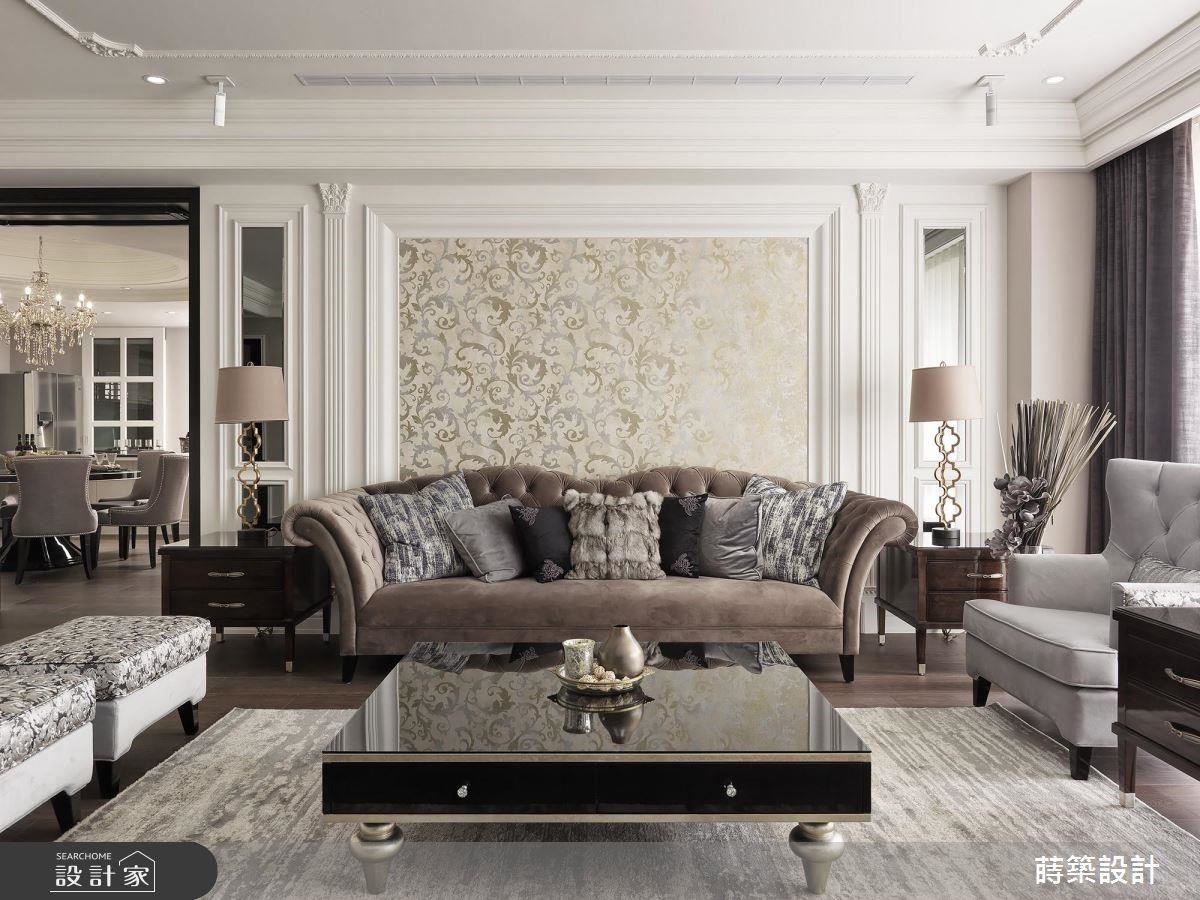 沙發背牆以低奢貴氣壁紙,豐富視覺焦點。