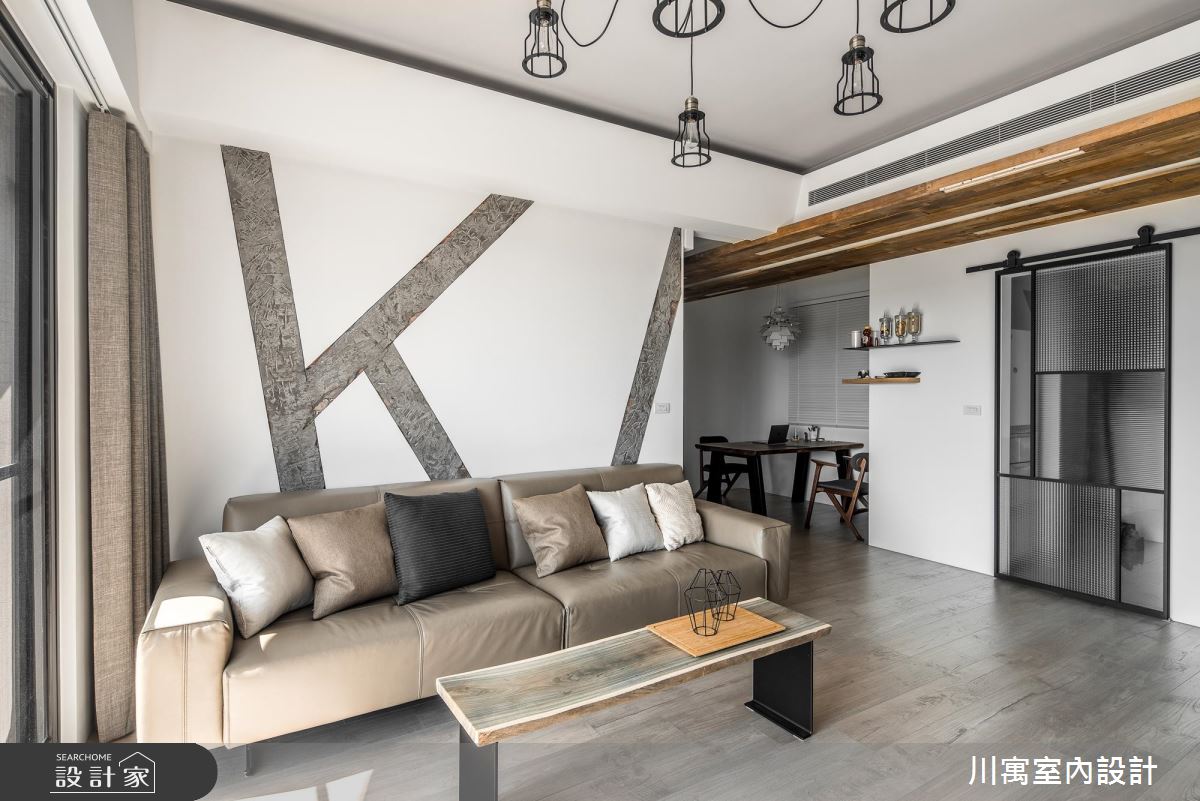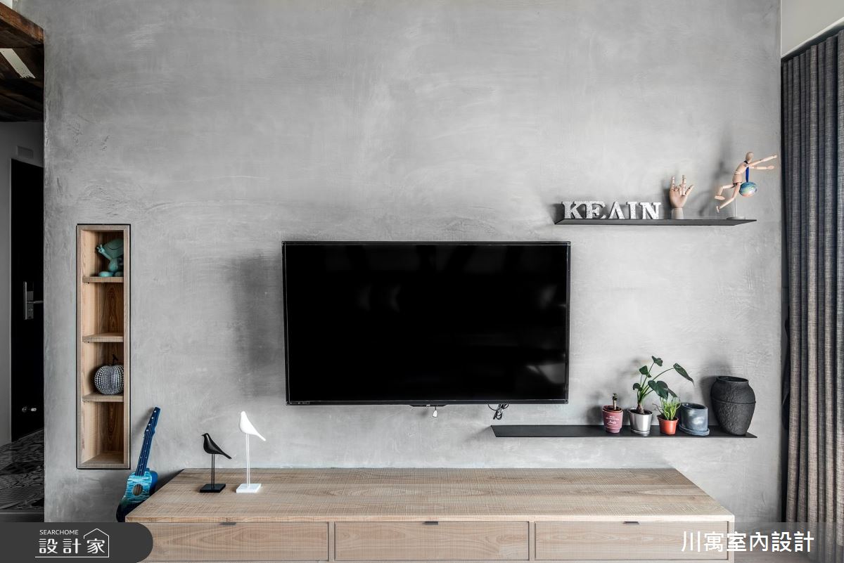 居家內帶入大量工業元素、且加入大膽、鮮明的圖騰彰顯個性,像是客廳沙發牆即做出局部裸露處理,以粗獷表情帶出搶眼風采;而經由格局改革後,電視牆因此獲得更大面積,採以水泥塗料鋪陳背景,刻意保有質樸的不均勻手抹紋理,搭配鐵件結構層板、仿舊木作櫃體等,讓電視主牆也兼具裝飾功能;居宅中的大樑,則巧妙運用仿舊木作包覆修飾,搭配樑線延伸,不僅拉高視野、降低壓迫、也形塑出一道微妙的居家動線;臥房內,以雙面窗光照亮全室,且善用每一吋坪效,使櫃體融入整體設計之中,替居室內增添一面美麗風景!