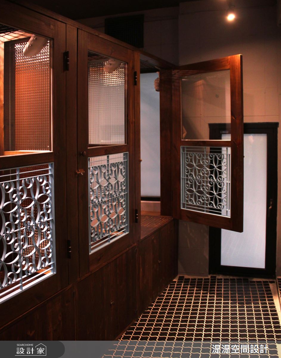 設計師順應老屋特有的歲月痕跡,保留局部紅磚牆,並裸露天花管線與傳統建築結構,同時施作水泥粉光地坪,呈現出粗獷樸質的工業風底調,同時帶入古早風情的窗花,加入亮麗的淺藍色處理,以衝突的元素、展現出豐富視覺層次;動線上,則透過機能整合,將大型遊戲室與用餐區相互串連,讓人與貓咪可隨時貼近互動,拉近彼此距離!