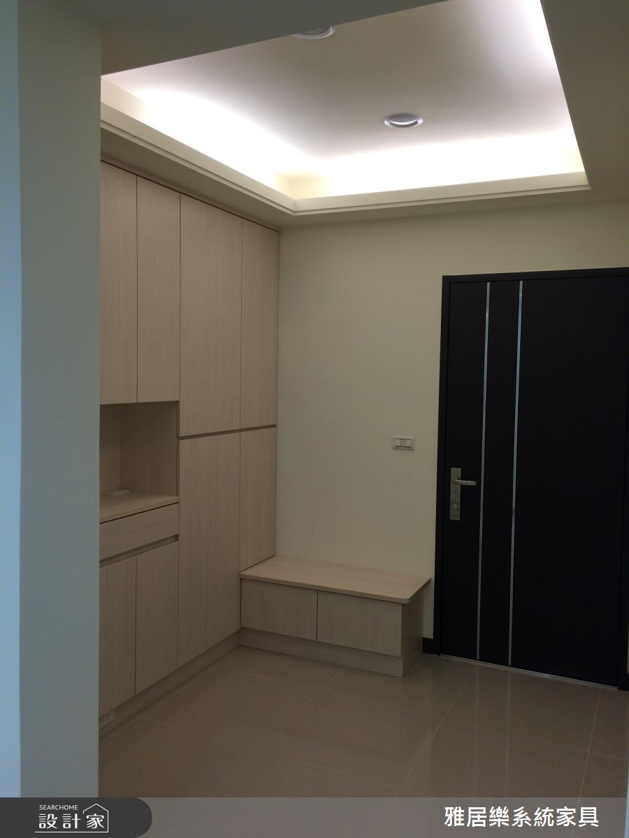 玄關處兩側以白、淺色木紋的系統櫃打造鞋櫃與收納櫃,輕柔淡雅的色彩讓微型的落塵區溫馨起來,還安排一張穿鞋椅,讓家人每天進出時,都能自在穿、脫鞋,非常貼心!為了讓戶外光線能走進室內,強化對外窗的設計,讓空間更顯明亮、舒心;公領域的天花板則以弧形線條勾勒,搭配照明營造出漸層的視覺感受,讓天際線更顯挑高、寬敞,柔和線條更呼應北歐風的自然;客廳的電視牆無特別精心打造,僅倚靠單純的牆面安排,並結合系統家具的收納機能,流露的鮮明線條彷彿原木紋理,將自然生命力植入家屋空間裡,創造美學與實用雙贏的優質家屋。