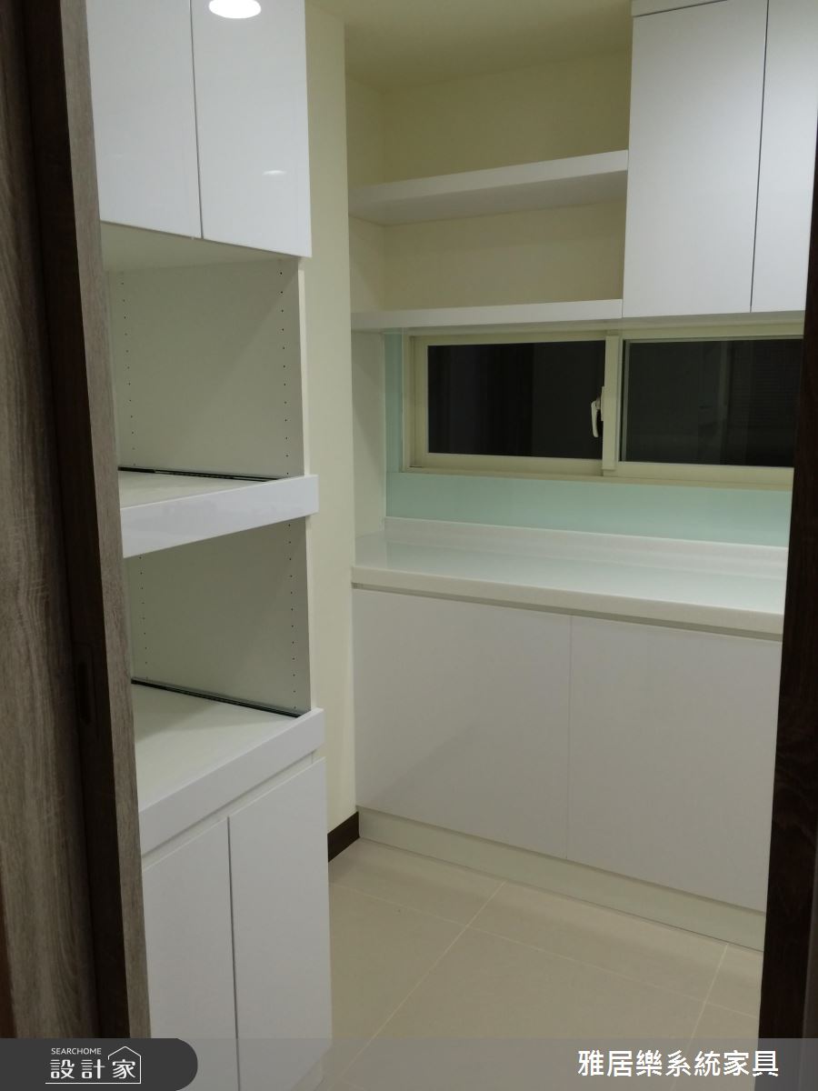整體居家空間利用白色與大地色系為基底,營造出溫暖簡約的生活氛圍;隔間改為磚牆設計,藉此強化隔音功能;系統收納櫃則創造出滿滿的收納機能,滿足全家人生活的高度便利。