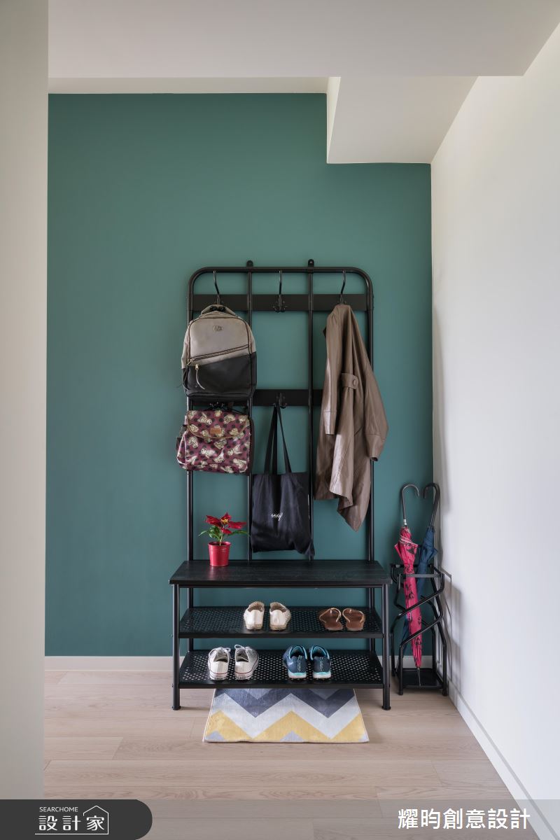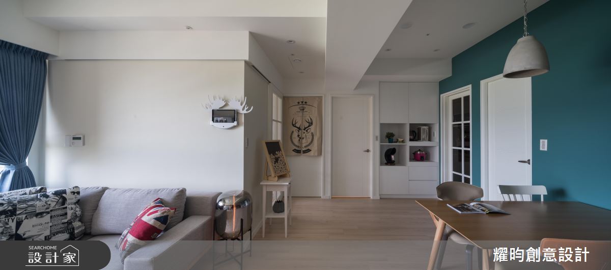 入口處,以一面綠色牆面跳出亮點,搭配置衣架機能形成端景,讓人一進門就立刻感受到主人的居家風格與品味;空間內部則加入開放式的格局,保有走道的寬敞尺度,並遠引自然光線導引暖意,讓空間整體顯得不壓迫且具有呼吸感,再搭配簡約中帶有品味的軟件妝點,擺放出生活裡的美好記憶,電視牆更刻意區分雙色櫃面,化解了大面量體的視覺壓迫,同時給予大容量的收納機能,將重點物品整合儲放在此;而風格鋪敘上,則賦予大面積留白、並添入木質平衡暖度,但以鮮濃的綠色穿插跳色,帶入玻璃格子門等元素,展現清新自在的北歐風格!