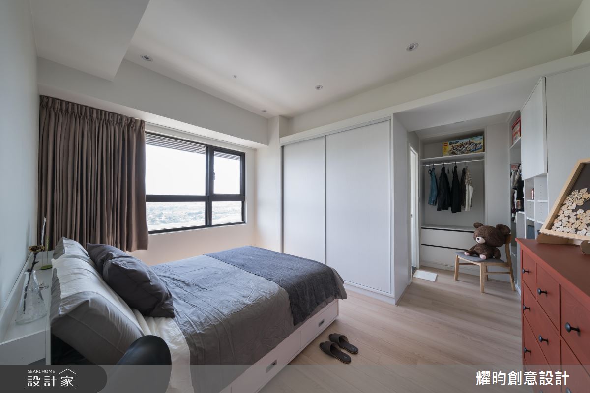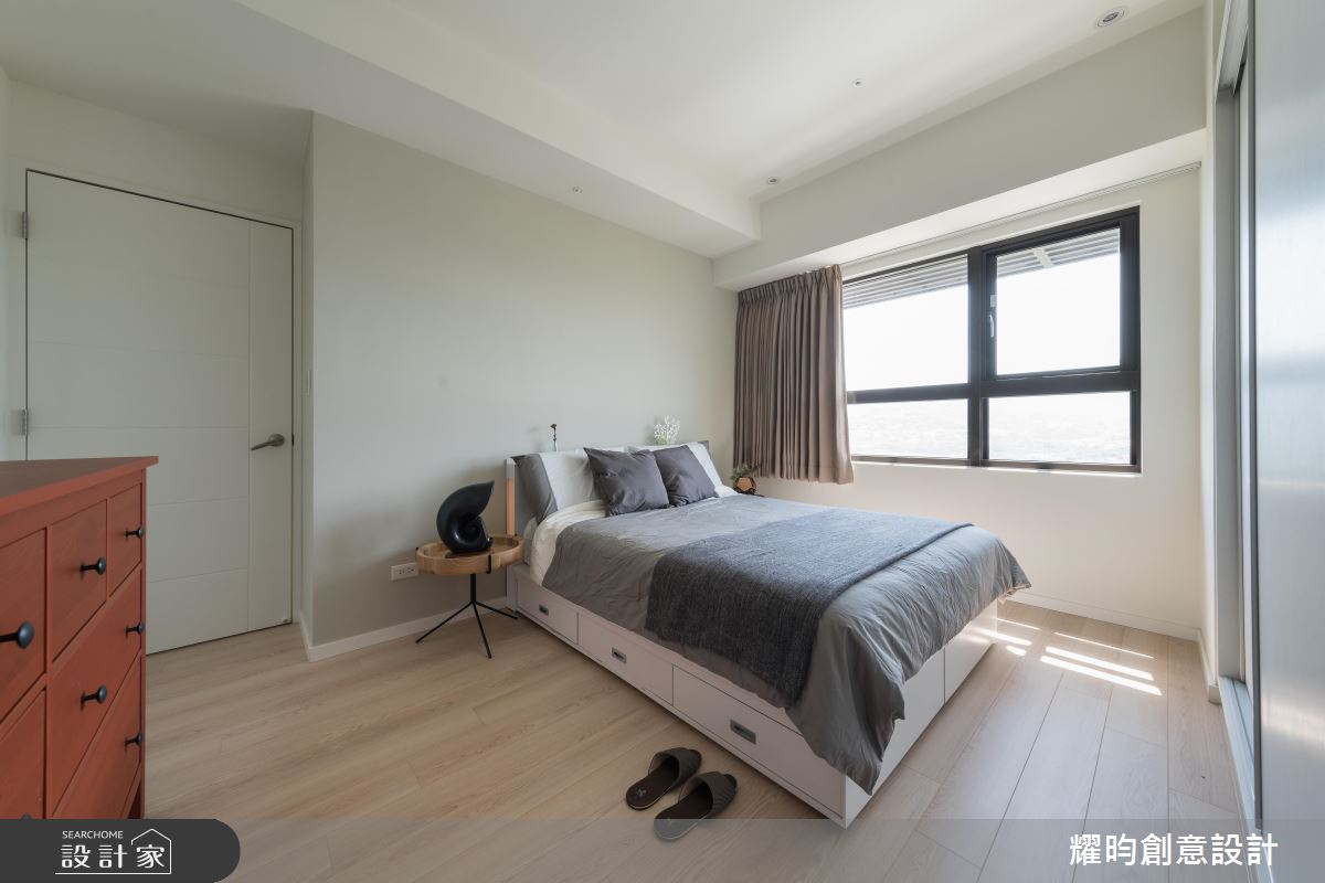 充滿無印感的臥房化繁為簡,沒有過多的設計、卻讓人倍感紓壓,同時在房間角落整合更衣間、衣櫃、衛浴等機能,滿足使用者日常所需!