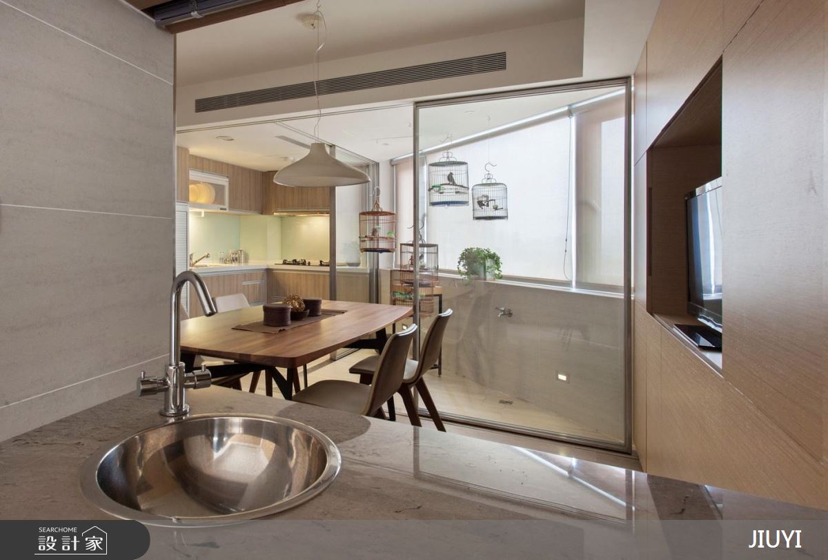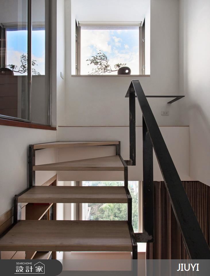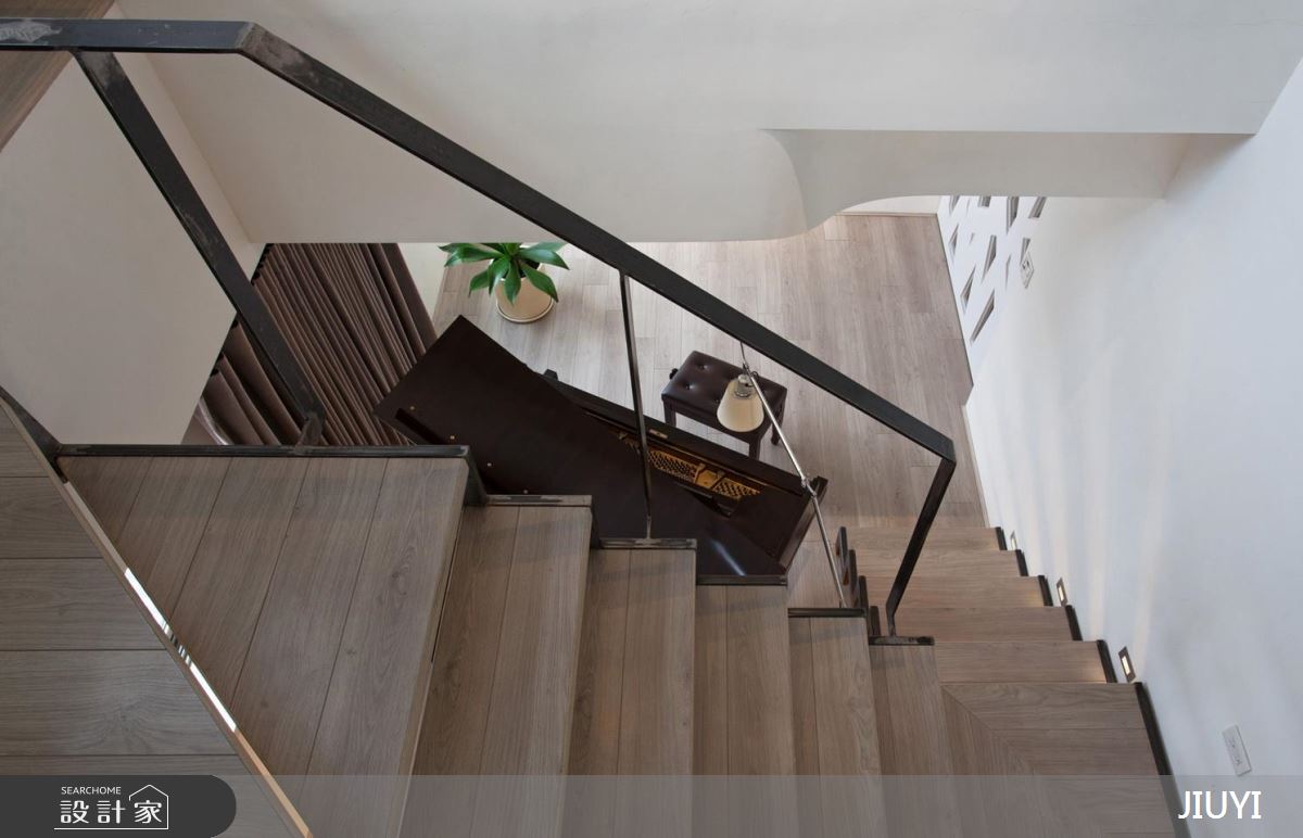 空間中,每個場域皆引用窗戶導引自然光線,讓視覺可連接屋外風景,但聽覺上則隔絕了戶外喧鬧,保留無限寧靜,搭襯充滿自然風韻的淺色木質,讓恬靜氛圍更臻完整;餐廳與廚房之間,則存在一塊斜面畸零地,巧妙將其規劃為三角陽台,並加入彈性拉門規劃,使陽台與其他場域融合,延伸整體視野,同時給予綠色植物、鳥籠點綴,圍塑成一處賞心悅目的展示風景;而雙樓層唯一重疊的空間,則透過打開樓板、挑高方式處理,以一道鏤空樓梯連結上下,下方安置一架鋼琴,其座落位置恰巧可使琴音繚繞而上,讓曼妙樂音瀰漫整個居室!