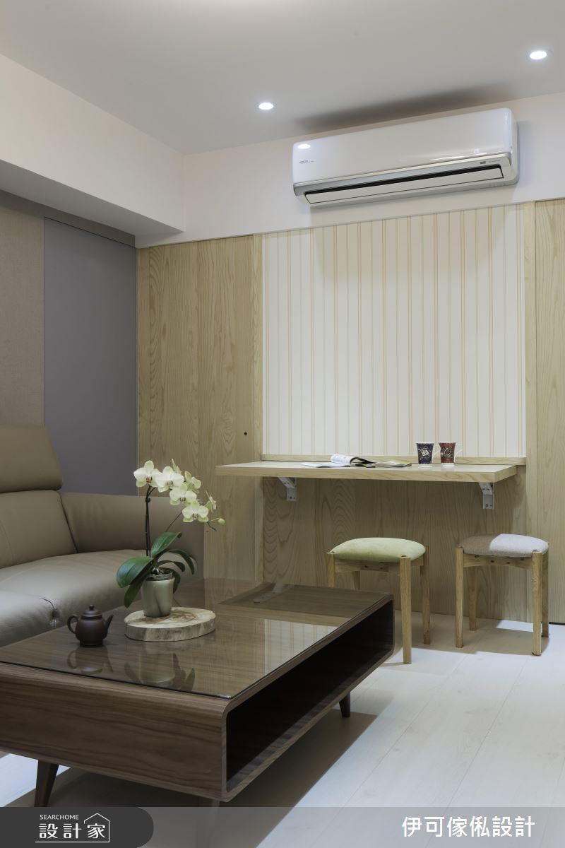 改造後的住宅,有著寬敞明亮的玄關,並讓公共空間加入淡雅木皮,呈現舒適簡約的北歐風格,且善用每吋坪效,於客廳牆壁結合活動式餐桌,讓家人可隨時在此用餐,不使用時,則保有有餘裕的走道空間;廚房內,改變天花板低矮、光線昏暗的問題,將走道加寬,打造整排電器櫃,整頓出良好的使用動線與齊全機能;主臥內,收納嚴重不足,竟連衛浴都挪用做衣物廚房空間,而經由重整後,不只創造大量的衣櫃,也給予充足明亮的採光,且讓主臥與三間次臥獨立開來,讓各個孩子都能有獨自的私領域,重塑一家人的全新生活!