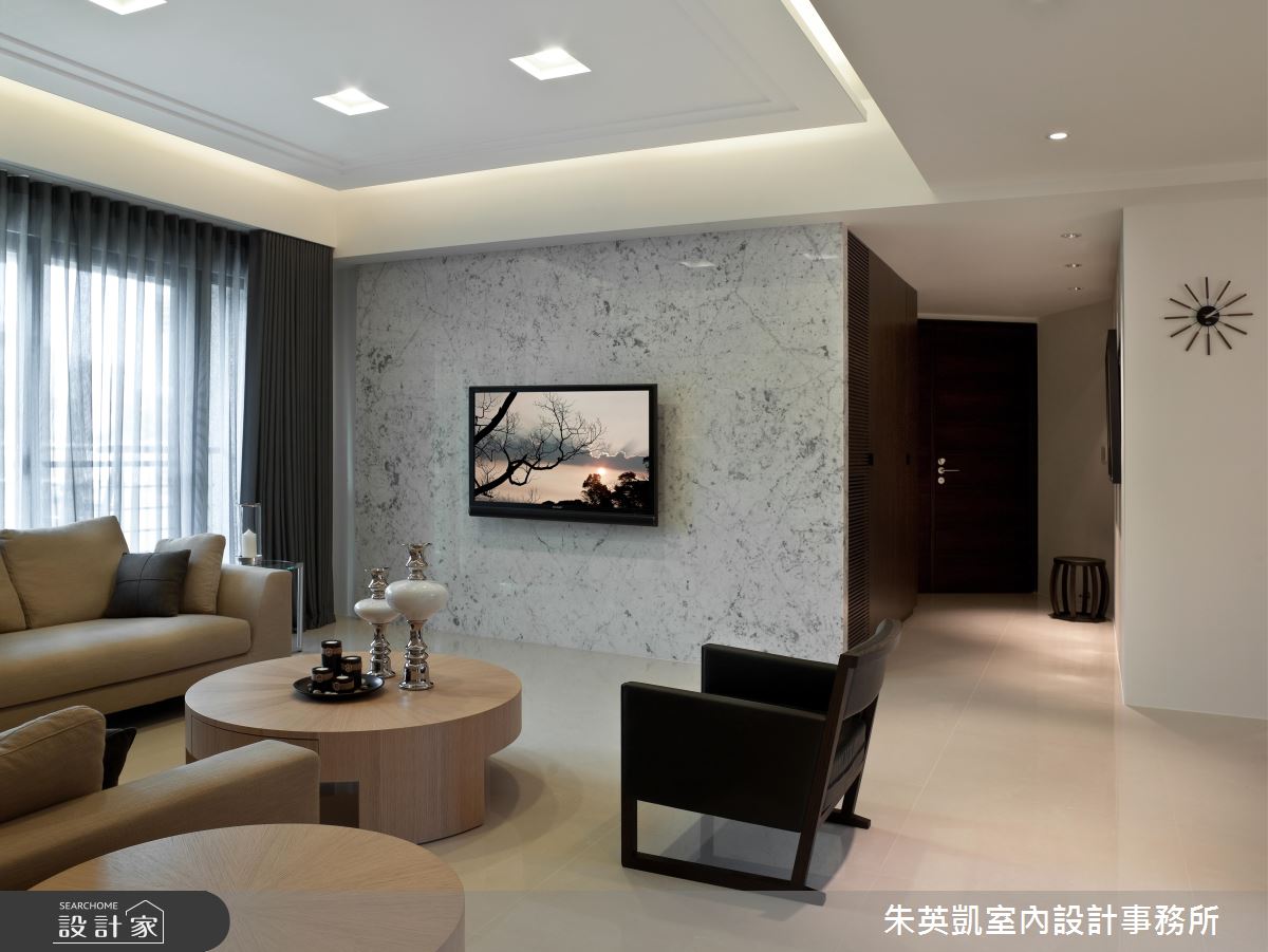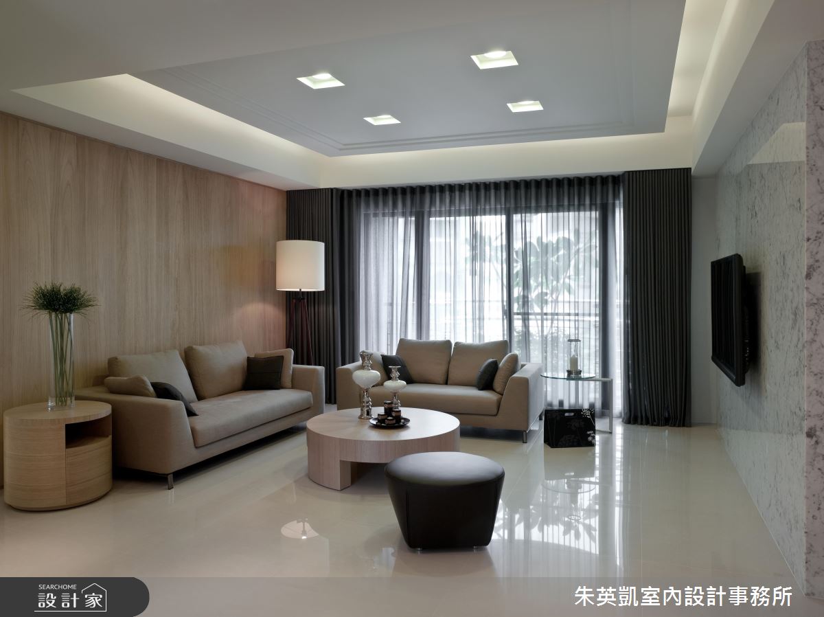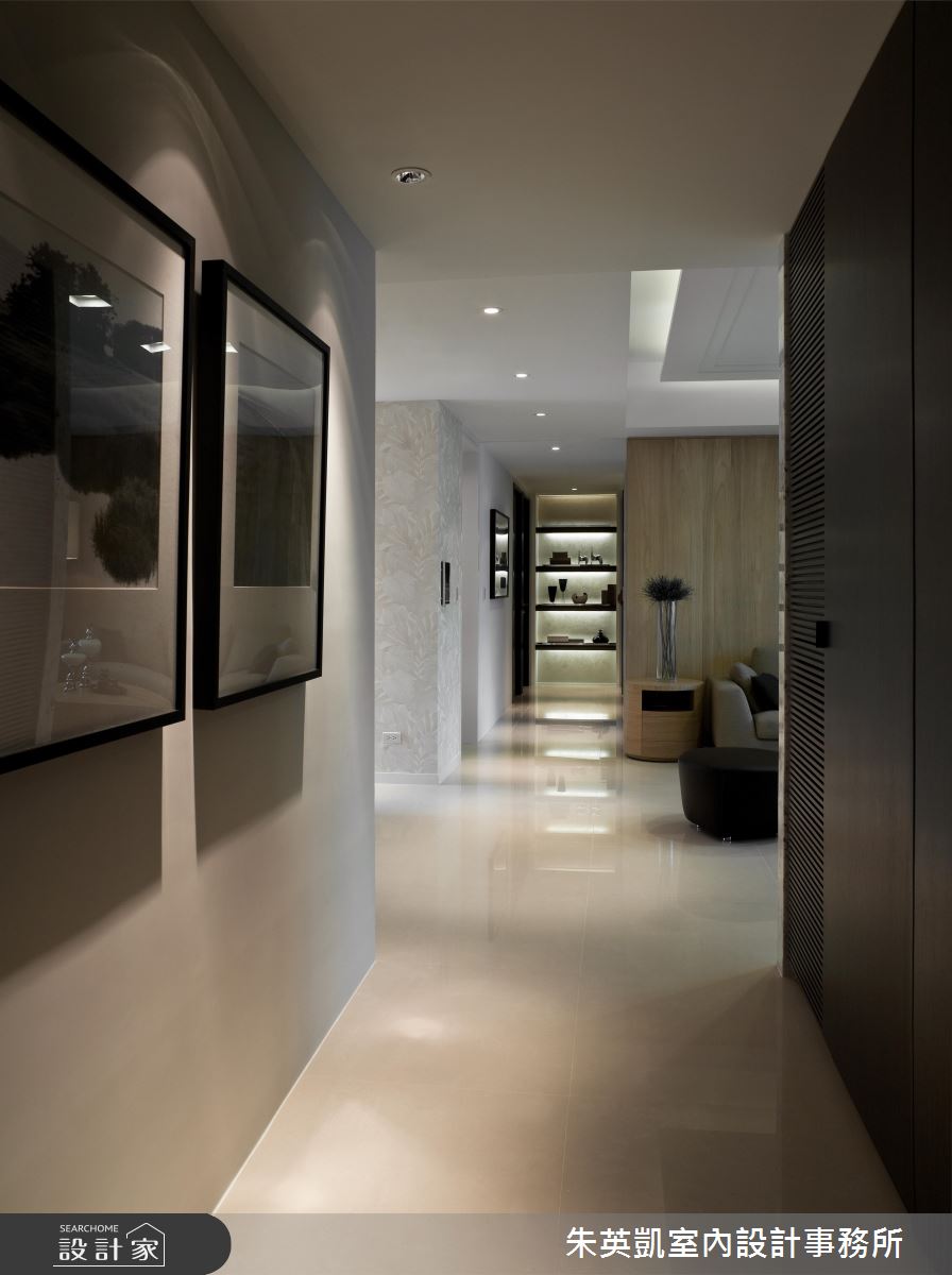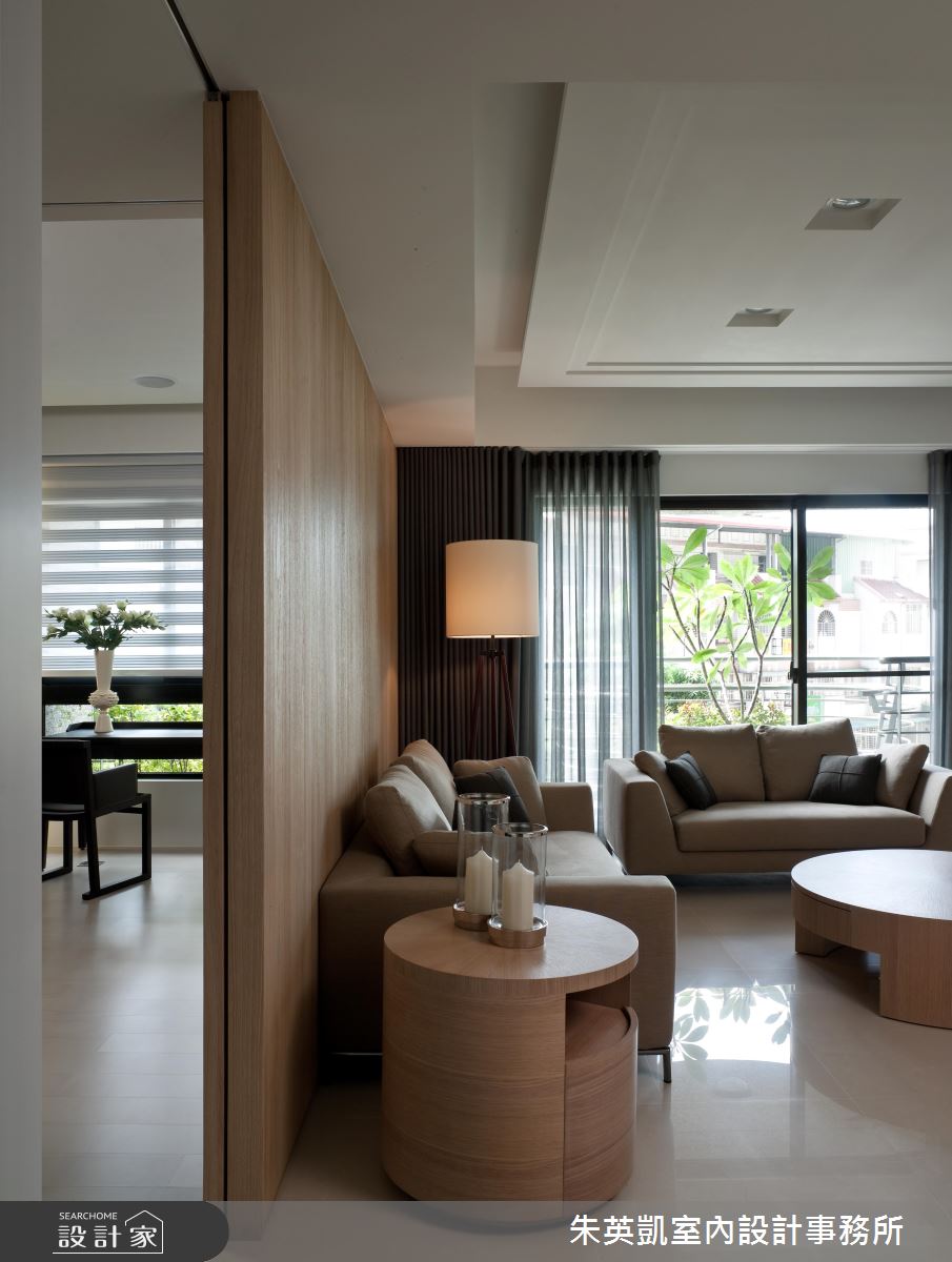 玄關區,呈現斜向脈絡,成為最佳的動線引導,創造具層次感的入門感受;客廳區,則讓電視牆鋪陳淺色石材,於後方暗藏大容量收納,落實清爽俐落的牆面風景,沙發牆則給予淺色鋼刷橡木紋鋪底,與戶外綠景相得益彰,帶出溫潤自然的質感;餐廳同樣透過窗面引導綠意,與木質餐桌呼應出舒適表情,且配置功能齊全的 L 型廚房與中島,並採用流明天花,營造清爽便利的使用情境;而書房、臥房則獨立於公領域之外,以客廳沙發背牆的暗門作為私領域起點,房間內,延續著靜謐氛圍,以細膩的材質搭接窗景輪廓,描繪出令人沉澱的無壓感受!