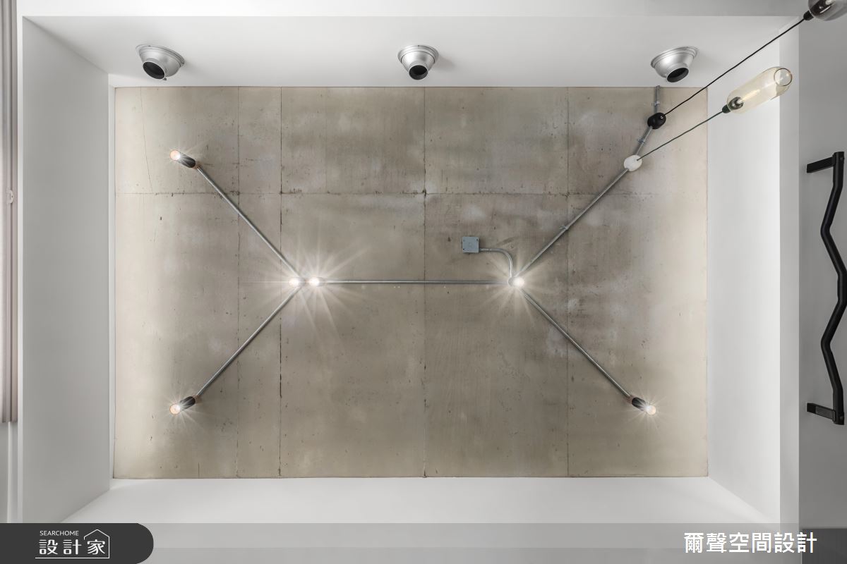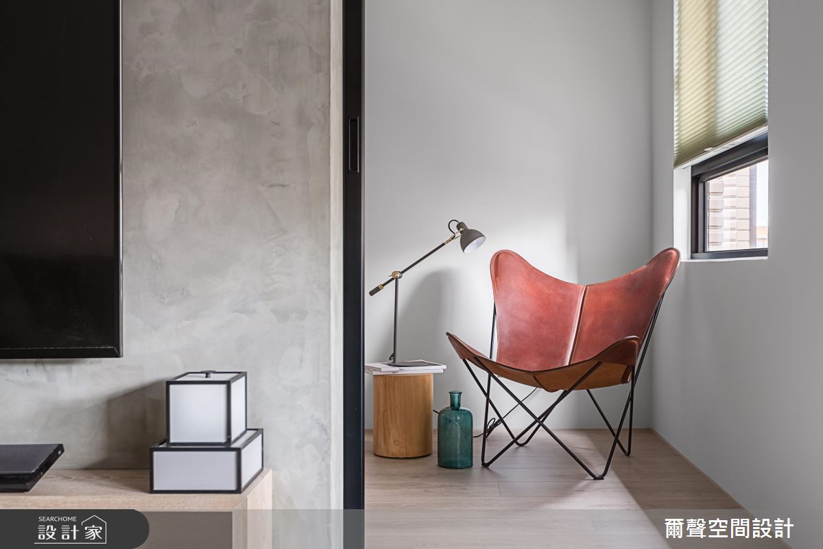 電視後方的小臥室做為多功能室,使用鐵件拉門鑲嵌透光玻璃,大部分時間可將這個場域開放,讓空間感順勢延伸,並促進光線自由穿梭!