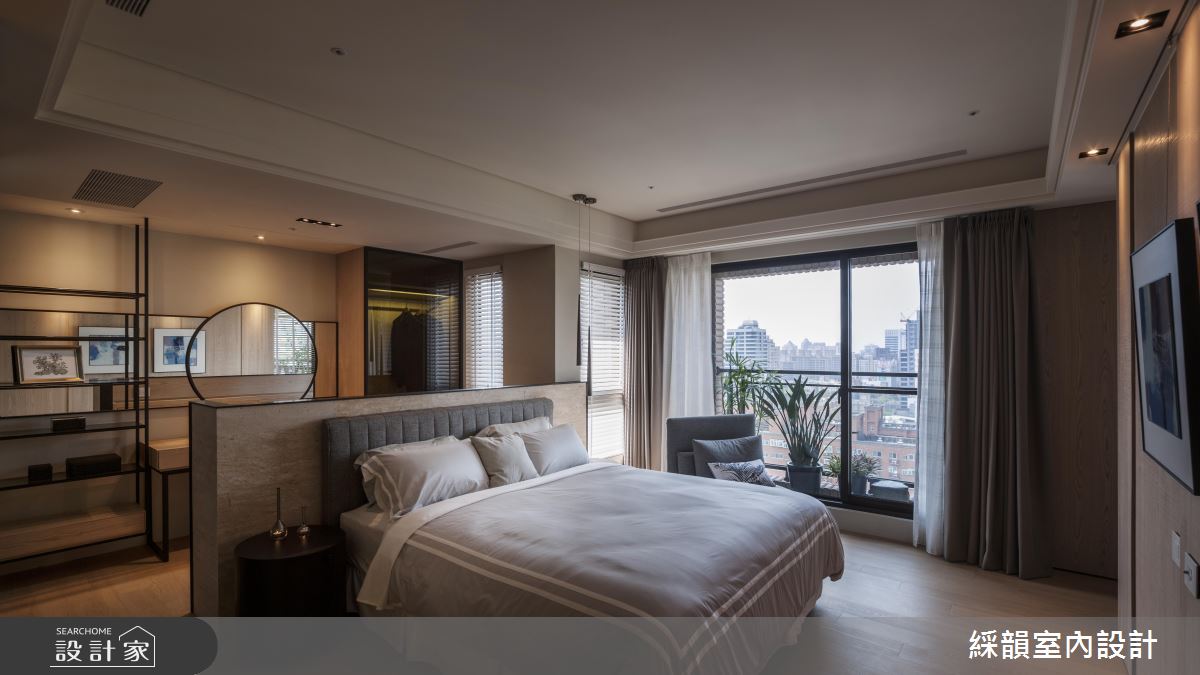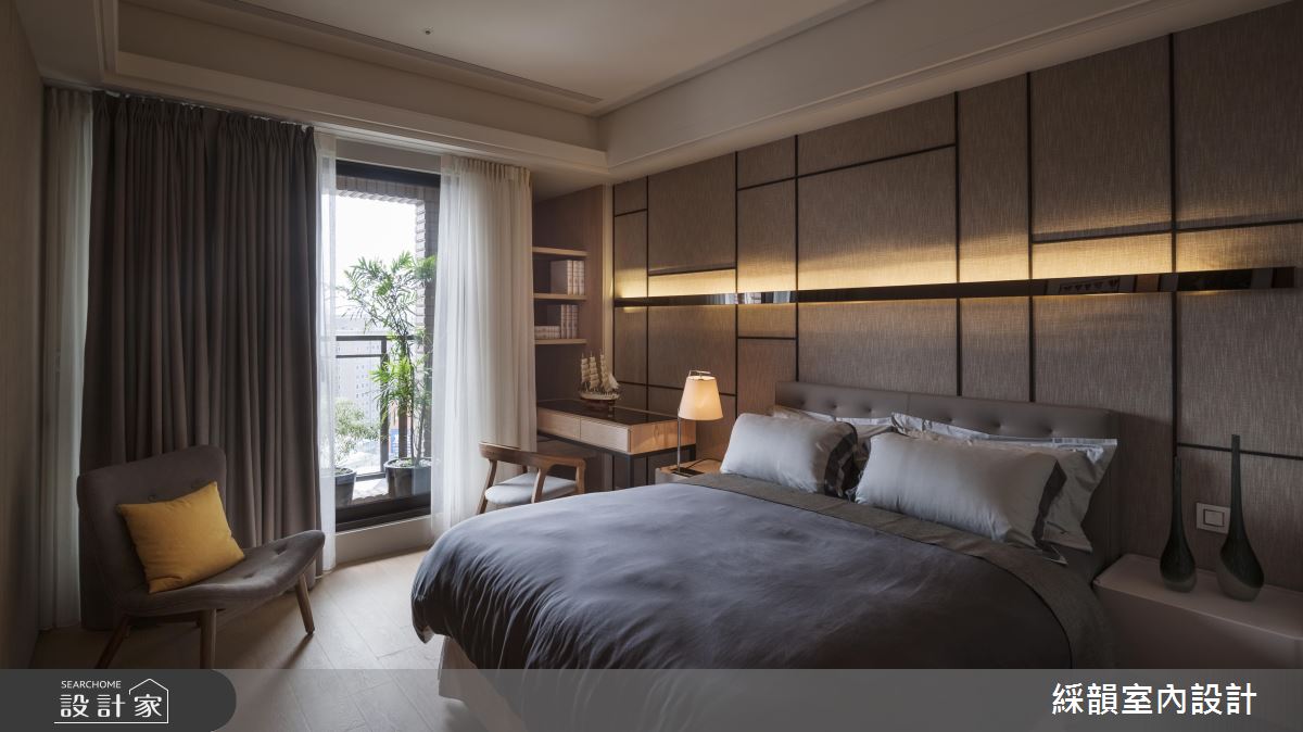 整體空間設計上,運用線條與材質的延續力道,串聯起天地壁的風貌,臥室裡延伸同樣技法,讓內外領域相互呼應,一氣呵成!