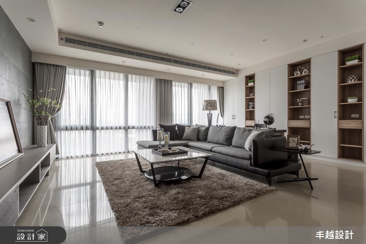 色彩選擇上,公領域呈現灰色調,以內斂色彩帶出穩重風格,但佐入豐沛的採光條件,使整體沉穩低彩卻充滿明亮感,客廳主牆則給予大面積的頁岩板鋪陳,形成質樸背景,其間穿插嵌牆展示櫃,或金屬感的裝飾物件等,帶出聚焦的主題畫面,沙發後方則規劃為開放式書房,配置局部開放的整面書牆,以虛實手法搭配線條變化,再融入木皮的清新感,讓此立面與主牆形成對比,溫潤且清新感十足;家人團聚核心的餐廳空間,安置了六人座餐桌,滿足全家人共聚的需求,旁側打造展示兼收納的餐櫥櫃,則替用餐區締造美觀景致;主臥內,於床頭做出特殊設計,讓人可將書籍、物品收整於櫃體內,甚至暗藏通往更衣間的入口,不著痕跡地隱化功能存在,讓室內每一道機能都顯得美形而俐落!