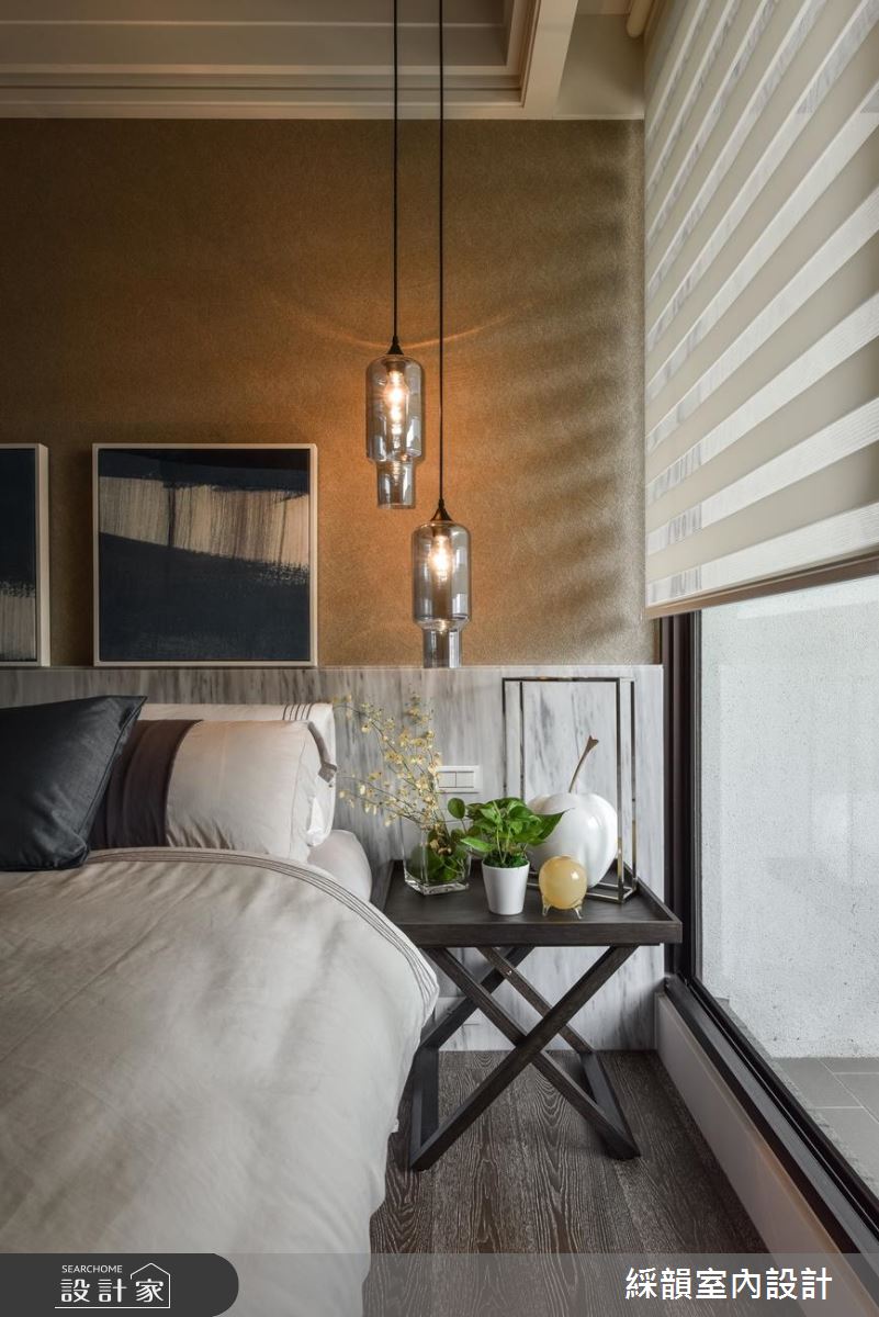 材質轉化是設計師演繹豪宅品味的細膩之處,藉由多元建材反映調性。像是客廳主牆為暖木質地,牆面上的垂直線條錯落有致,替空間增添表情變化。客廳與餐廳之間,則運用大理石電視牆作為空間場域的輕盈切割,深淺灰紋點綴出雍容高雅,通透的開放式格局也呈現大坪數豪宅的寬廣特色,視覺上彷彿更加放大了空間。相對於客廳的現代風格,用餐區的木質感餐桌、單椅充滿濃厚的馨情暖意,象徵全家人在此團聚時的天倫之樂,造型吊燈及牆面壁燈的矩形為整體環境畫龍點睛,呈現都會時尚般的現代韻味。步入臥房,風格轉趨舒緩靜謐,有如五星級飯店般的高端品味就此展開,延續出時尚都會的空間調性,愜意慵懶的私人場域悠揚出清雅絕美的豪宅風範。