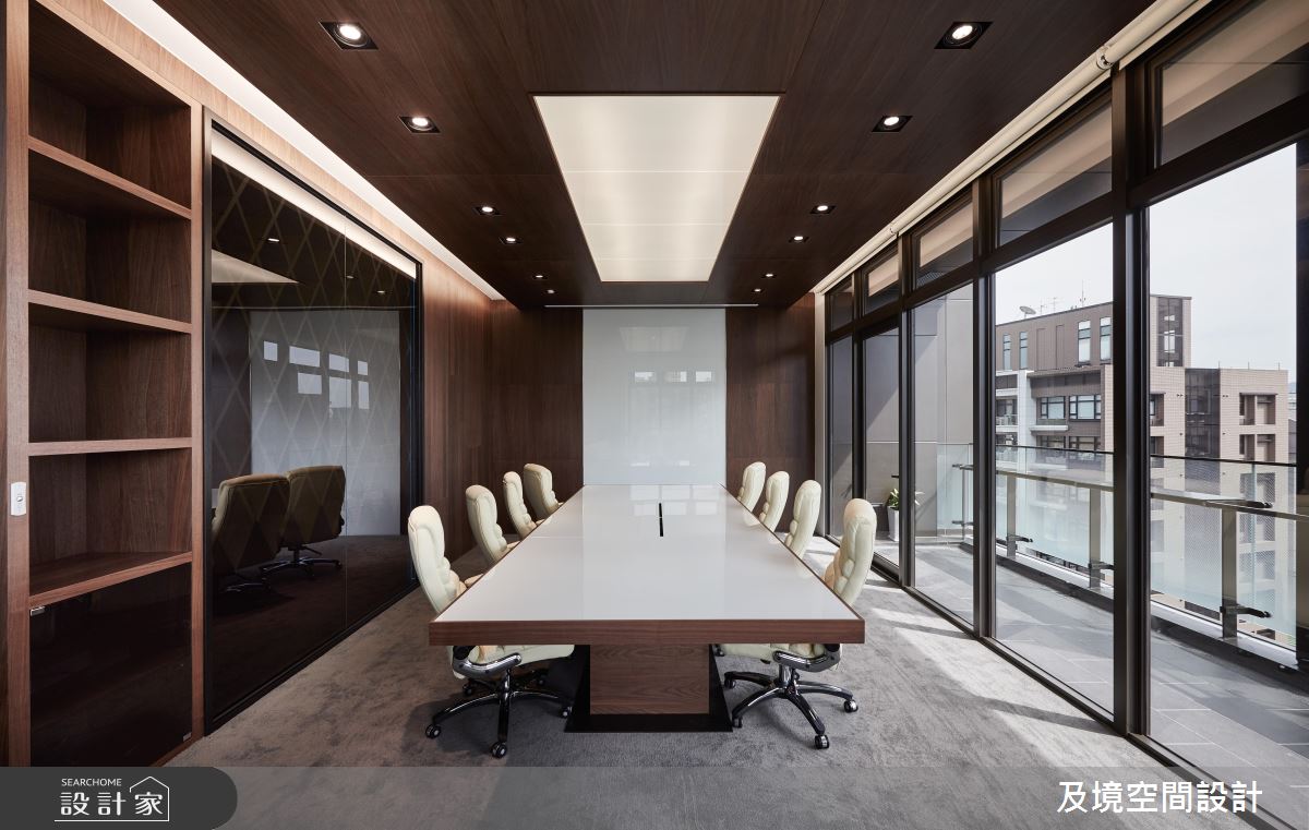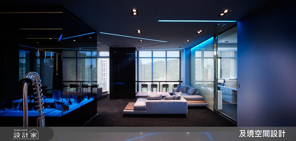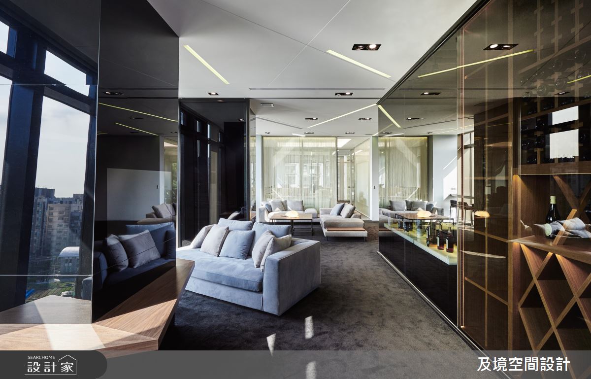 空間內,刻意使用通透感材建材交互搭配,如鏡面、玻璃、烤漆等,帶出時尚的表情,並讓每個區域互補串聯,形塑流暢的使用動線,且打破制式格局架構,利用現場高度優勢,帶出挑空敞闊的空間感,天花板亦給予造型變化,融入延伸的燈帶裝飾,塑造明暗層次,交錯之間映照視覺趣味;循著動線步入會客區,則可見大面窗景優勢,藉此導入良好採光、並迎納美麗的大面積景緻,讓顧客可在此被綠意環繞,覓得滿滿的呼吸感!