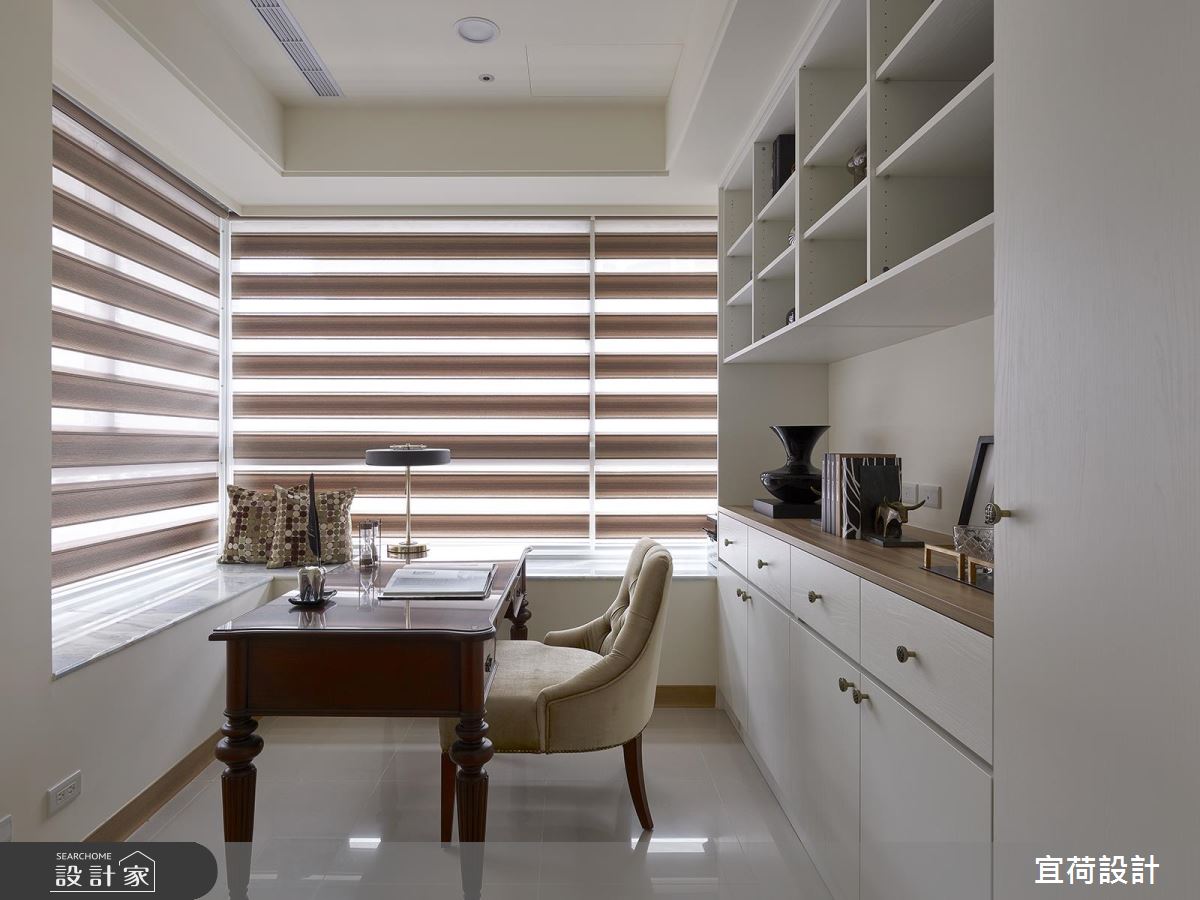 書房的古典木桌與軍刀腳椅,搭配 L 型的窗邊臥榻,在自然光的映照下,賦予屋主優雅的閱讀環境。