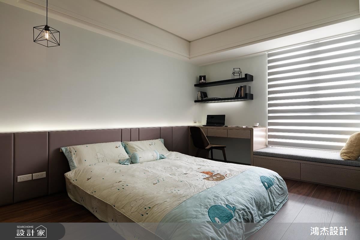 相較於公共空間的灰白沉穩,三間臥房都展現了不一樣的表情,並佐以系統櫃加強收納,讓每位成員都能享受舒適的氛圍。