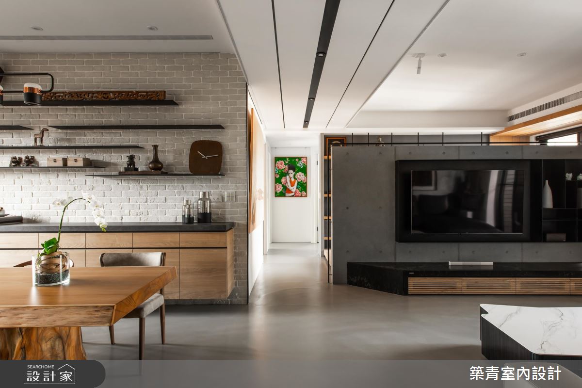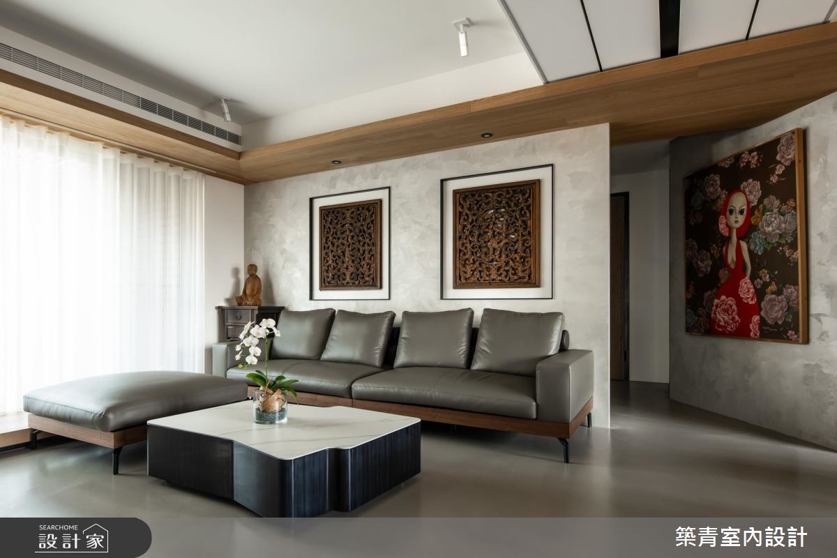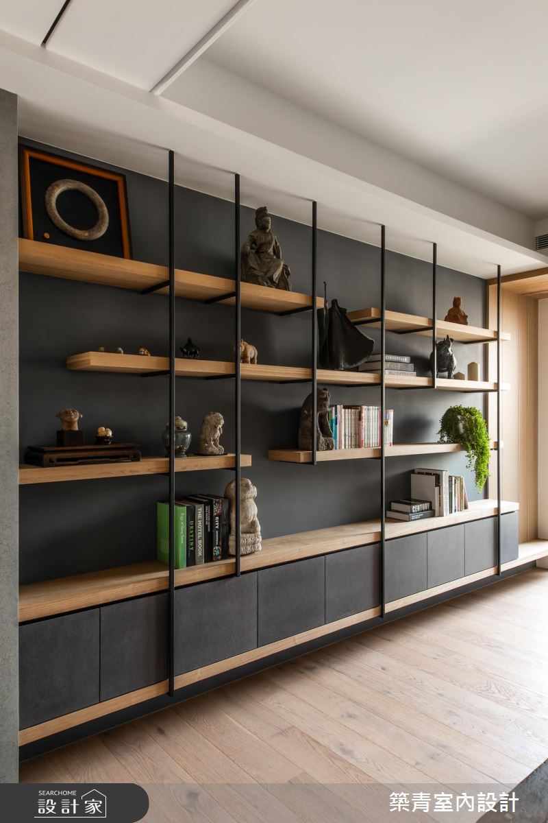 32 坪混搭風宅邸,運用屋主喜愛的灰、黑色調定調空間沉靜而內斂的氛圍,同時加入木質材點綴,調和居家場域的冷、暖度。去繁為簡的設計原則,讓來自各地的收藏逸品成為視覺主角,每一幅畫、每一座雕塑品,皆量身訂作出最合適的展示方式,無形中與設計融為一體,打造宛如置身藝廊般人文氣息,在滿足生活機能的同時,實現了「藝術即生活,生活即藝術」的理念。