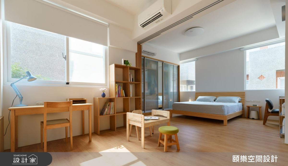 空間整體引用無垢木、白色、不鏽鋼、水泥灰等四大色調,鋪陳出最舒適和諧的生活視野,動線規劃上,則考量家有未滿 3 歲的幼童,盡量採用可移動式的家具軟裝,滿足更寬敞與流暢的使用面積;同時創造開放式的客、餐廳格局,讓女主人可在廚房裡一邊烹飪、一邊與孩子互動,拉近家人間的情感聯繫;二樓設定為主臥區,以連動式推拉門將場域一分為二,兼具隱私的同時,也增添臥房的使用彈性;三樓客房,作為未來的兒童房,目前暫時成為親友拜訪時的短暫居所,並於室內配置輕簡便利的活動式家具,打造無印風的舒適場景!