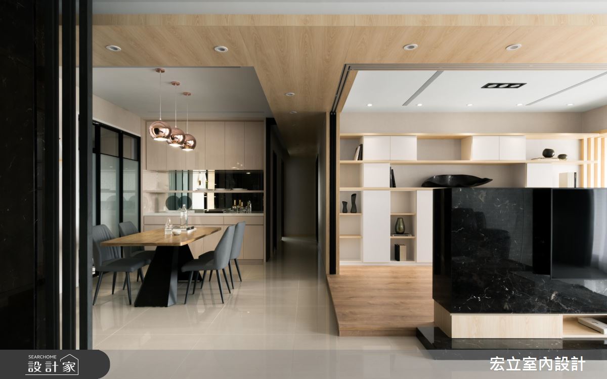 50 坪混搭風新居,設計師深入了解屋主的生活習慣後,釋放一臥房格局,擴增公領域範圍,打造多功能休憩場所,整室建材用料單純,適度的木建材、石紋、白色系,為現代設計鋪上一層能徹底解放壓力的舒適感!