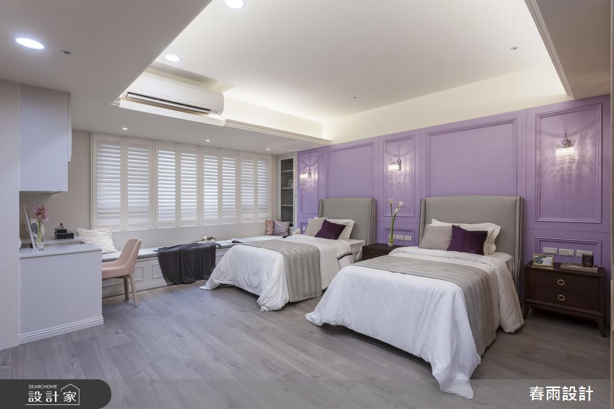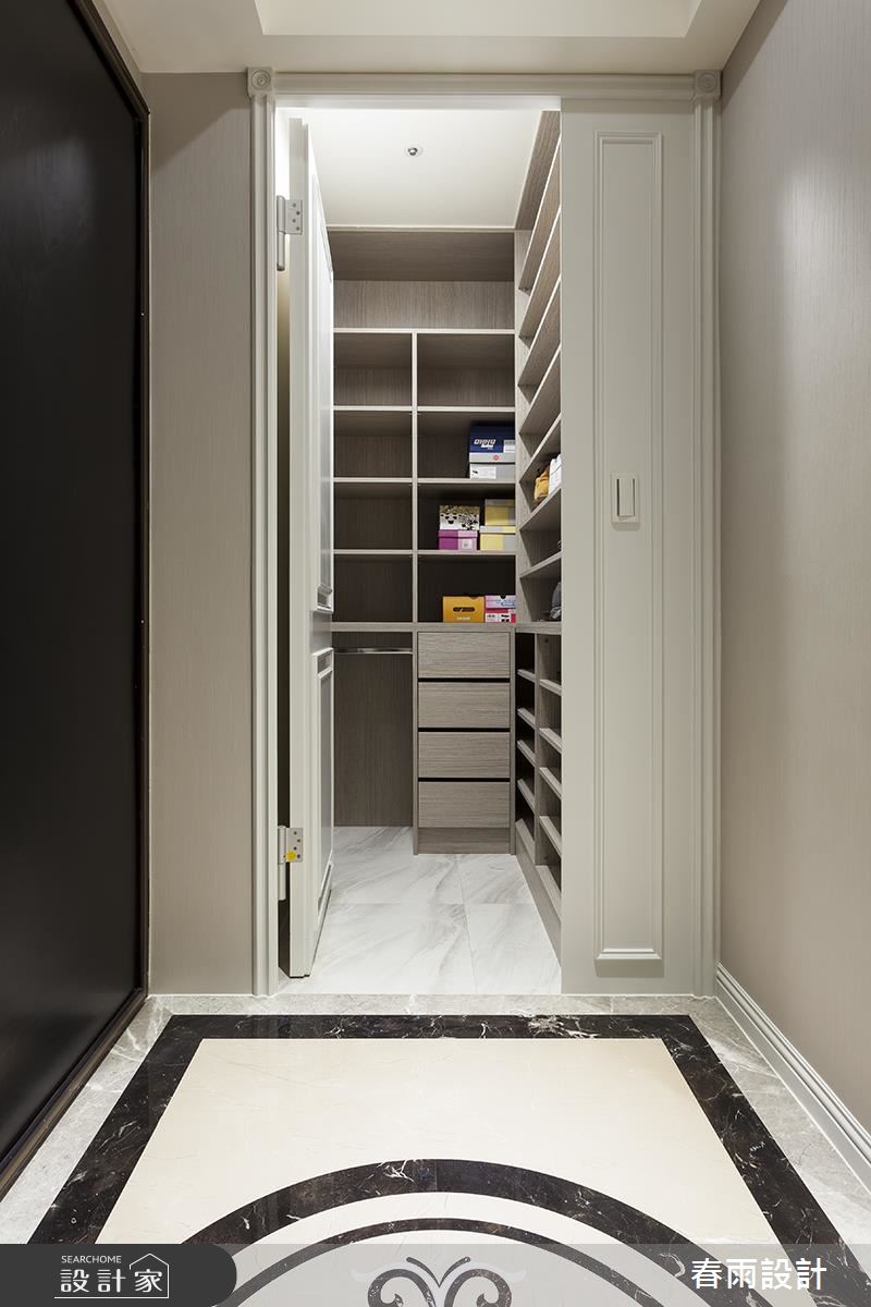 63 坪的新古典大宅,利用純白線板堆砌立面,加上深色的家具配置,讓整體空間在開闊中帶著沉穩感,並依照兩大兩小的生活需求,安排最恰當的格局規劃。