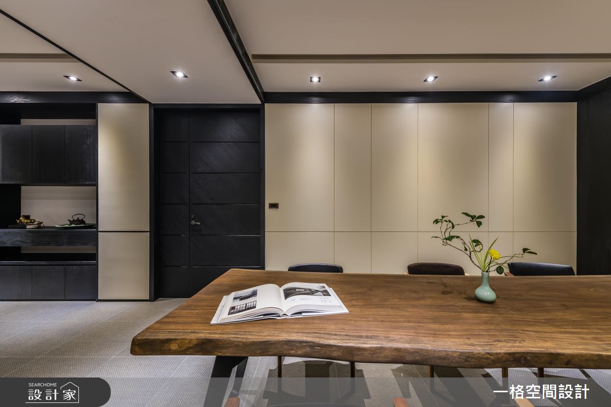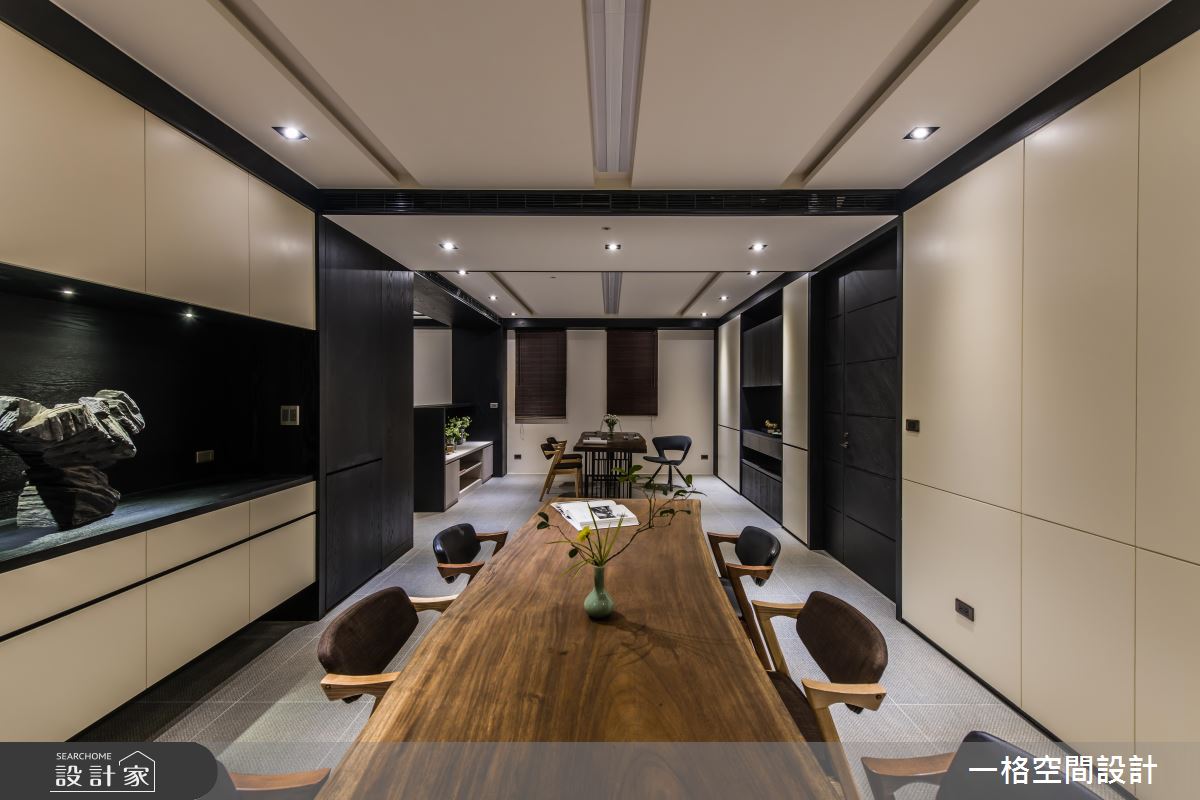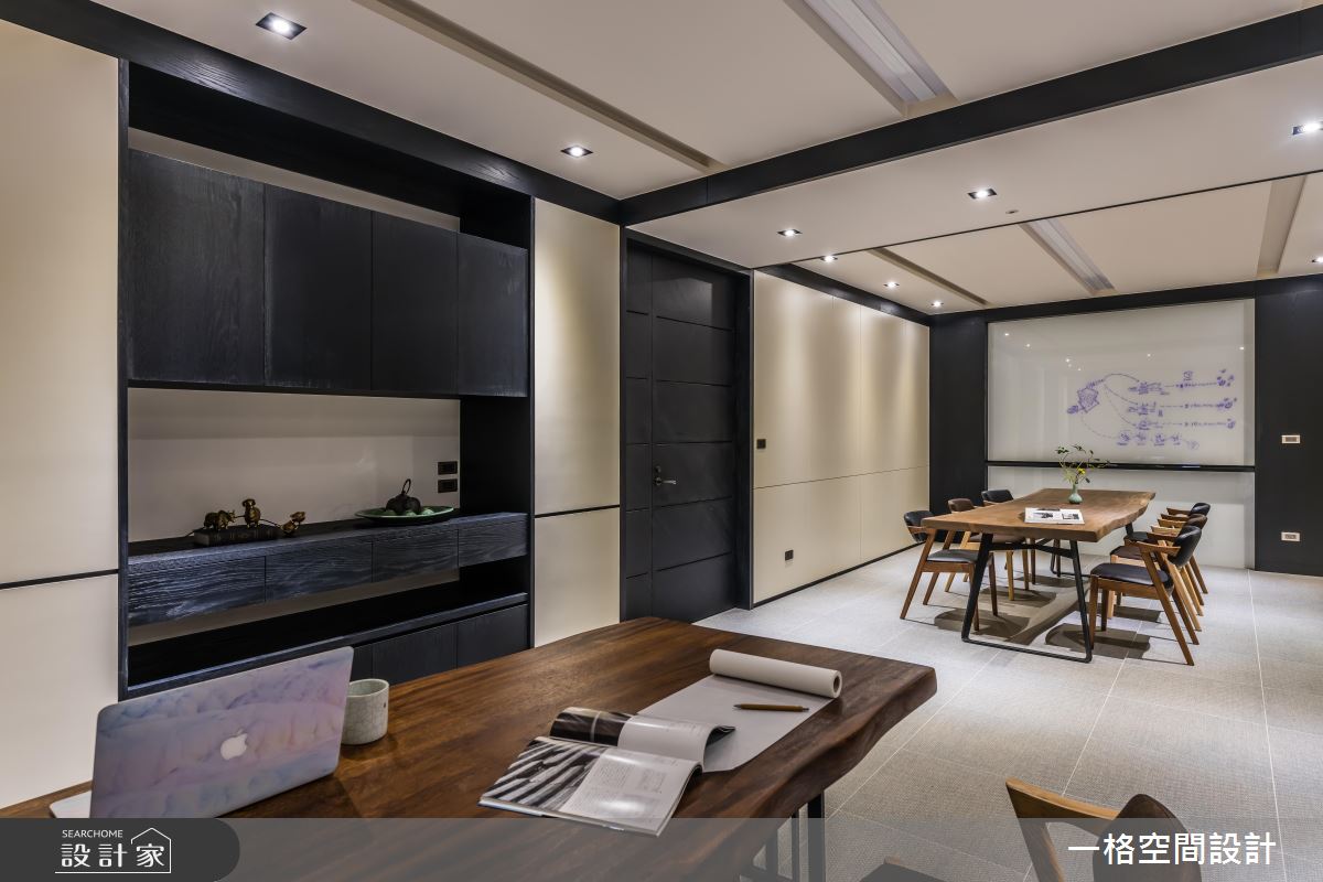 除了順著大樑結構切割領域主題,還利用收納櫃體轉化為隔間元素,並結合風水方位的東方設計,現代簡約之中又注入中式思維,其中傾注大量的木紋元素,創造出放鬆、愜意的辦公環境。