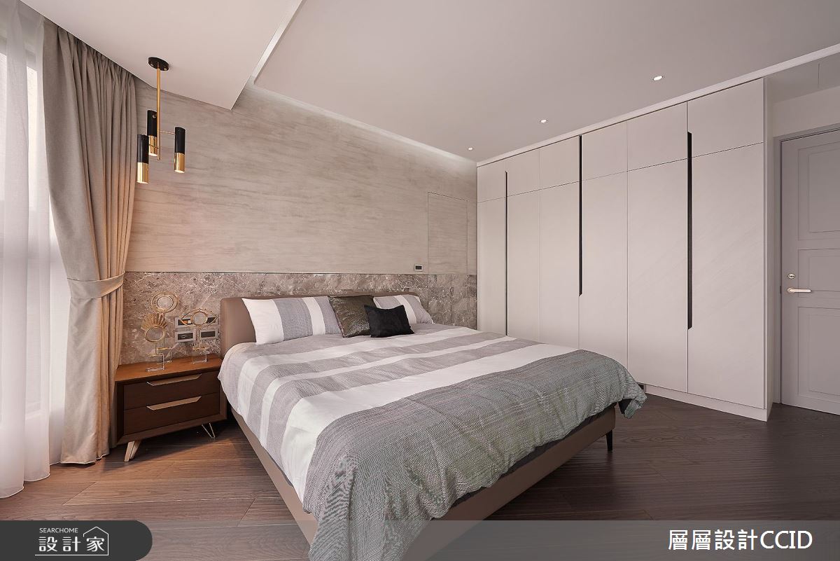 更衣室機能獨立於公共空間,利用隱藏式門片,加乘更衣室隱私氛圍,且坐落於廊道底端,從各臥房進出使用動線皆順暢方便。